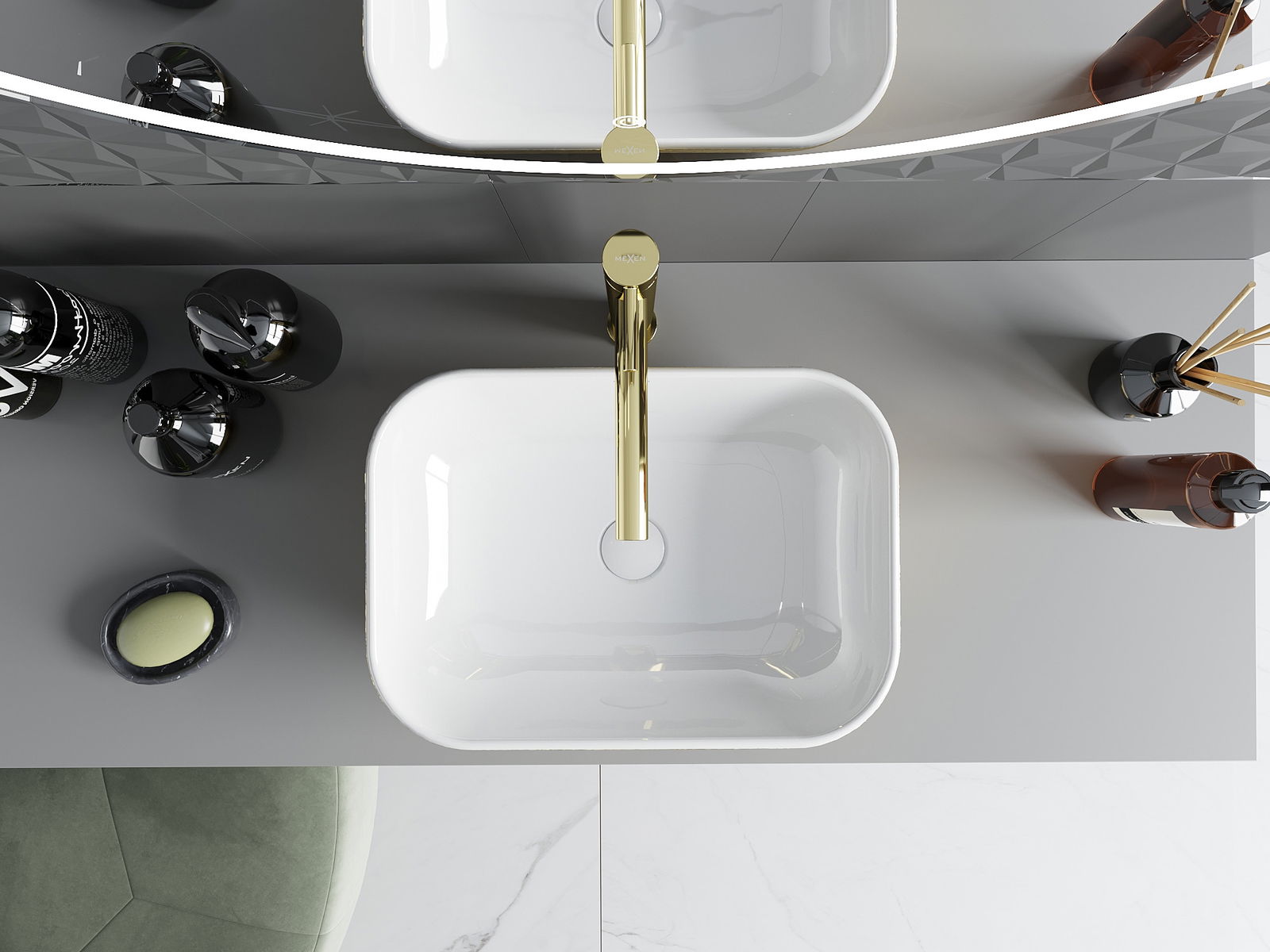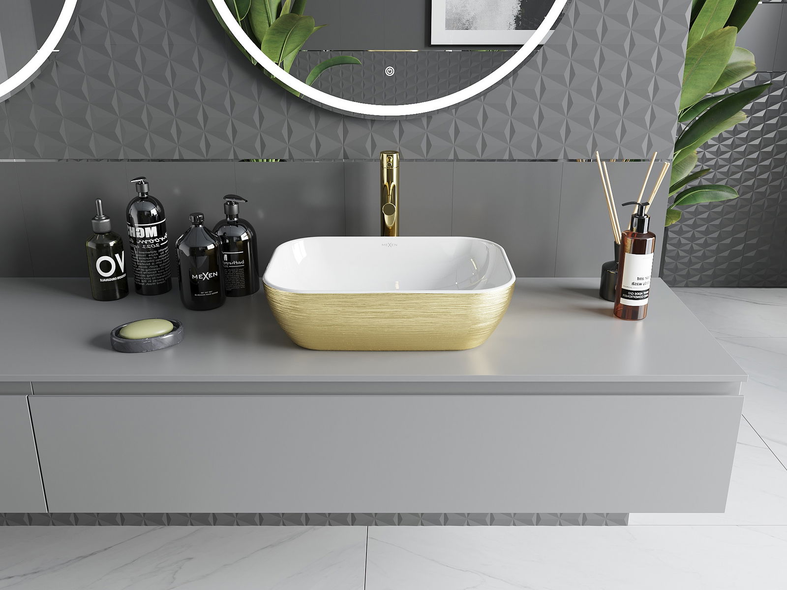 Mexen Rita мивка над плот 45 x 32 см, бяла/златни линии - 21084553