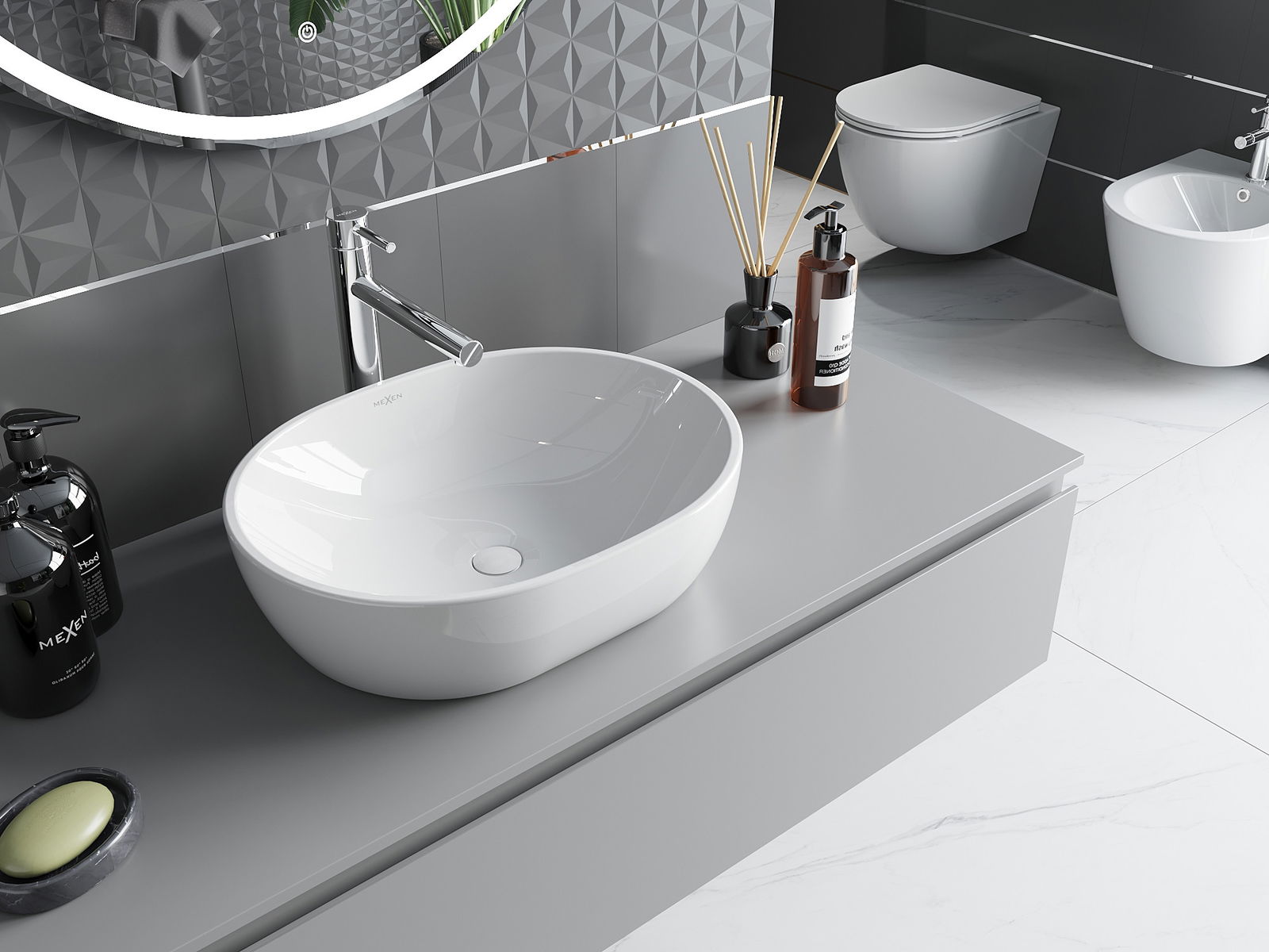 Лъскавата керамика е елегантна и безвременна. Той добавя специален блясък към банята, подчертава естетиката си и въвежда повече елегантност на интериора. Блясъкът отразява светлината, благодарение на която създава впечатление за разширяване и яркост.