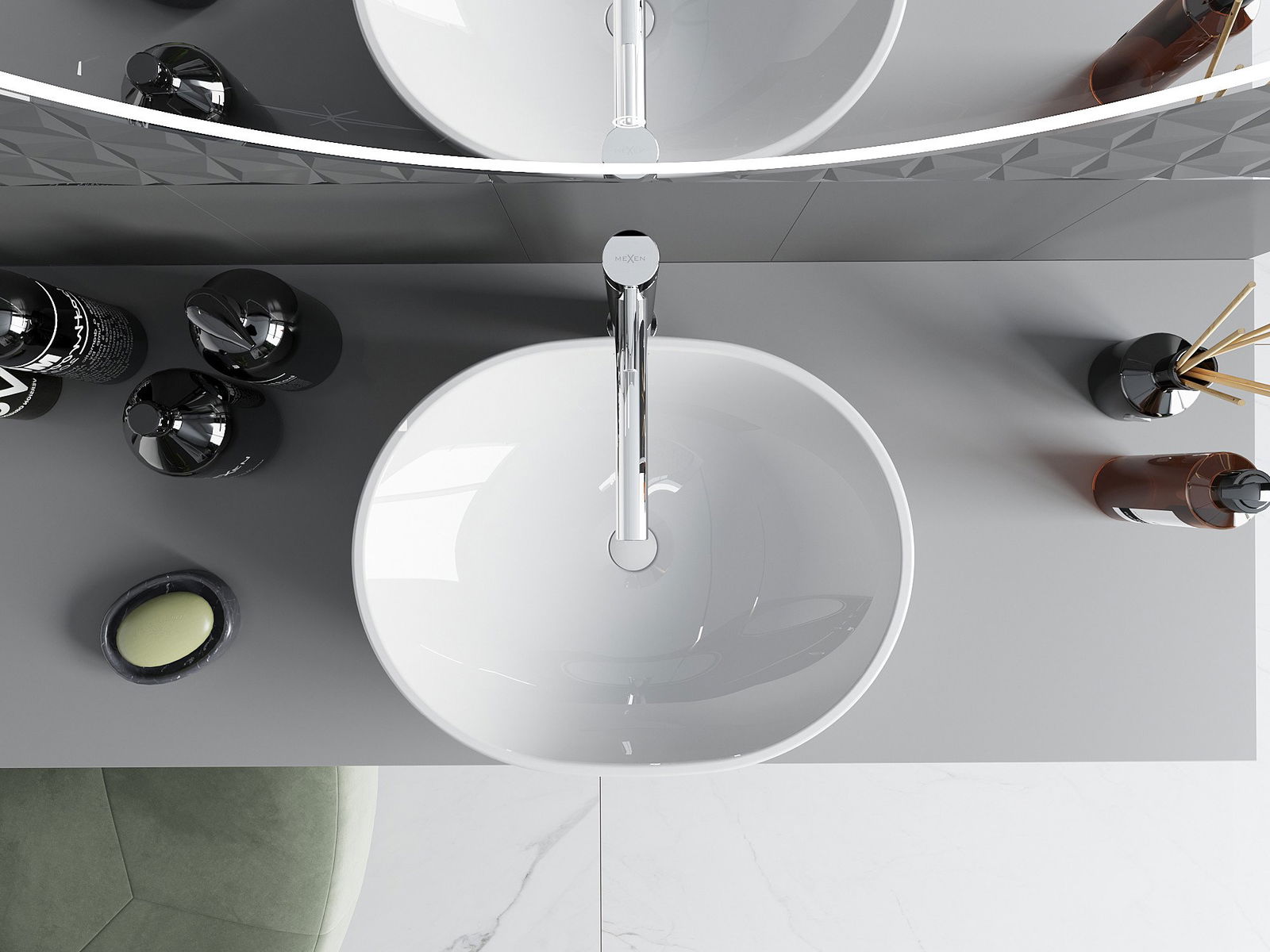 Продуктът е направен от най -висококачествената керамика. Характеризира се с устойчивост на ръжда, химикали и свойства с висока хигиена. Той е не само траен, но и лесен за почистване.