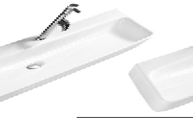 Мивката има дупка, в която можем да монтираме батерията. Това спестява ценно пространство в банята и подчертава естетиката му. Това решение също ви позволява лесно да се държите чисти около мивката.