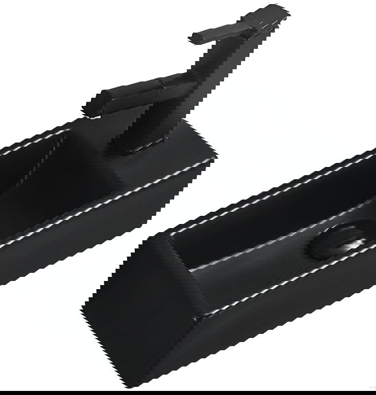 Мивката има дупка, в която можем да монтираме батерията. Това спестява ценно пространство в банята и подчертава естетиката му. Това решение също ви позволява лесно да се държите чисти около мивката.