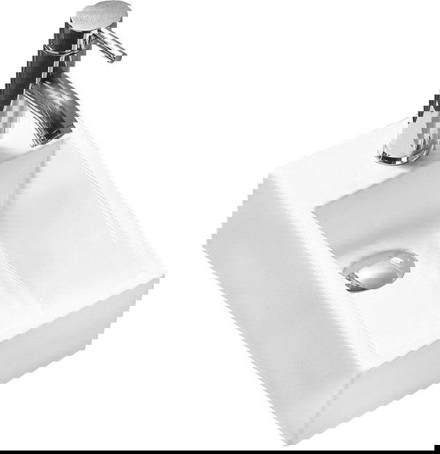 Умивалникът има отвор, в който можем да монтираме батерия. Това позволява да се спести ценно пространство в банята и да подчертае нейната естетика. Това решение също така улеснява поддържането на чистота около умивалника.