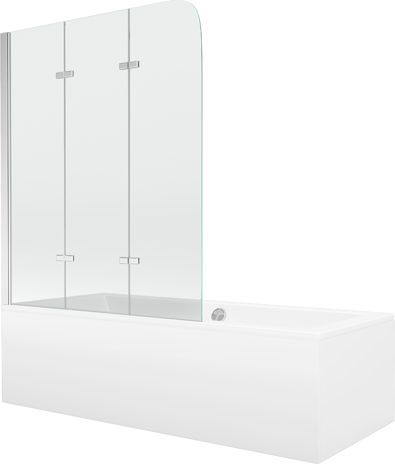 Mexen Cube правоъгълна вана 180 x 80 см с облицовка и 3-крилен параван 120 см, прозрачен, хром - 550518080X9012030100