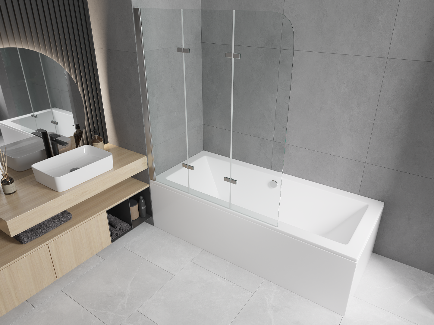 Екранът е направен от три крила с възможност за сгъване. Това решение спестява повече място в банята и ви позволява свободно да използвате останалото пространство, когато не използваме зоната за къпане.
