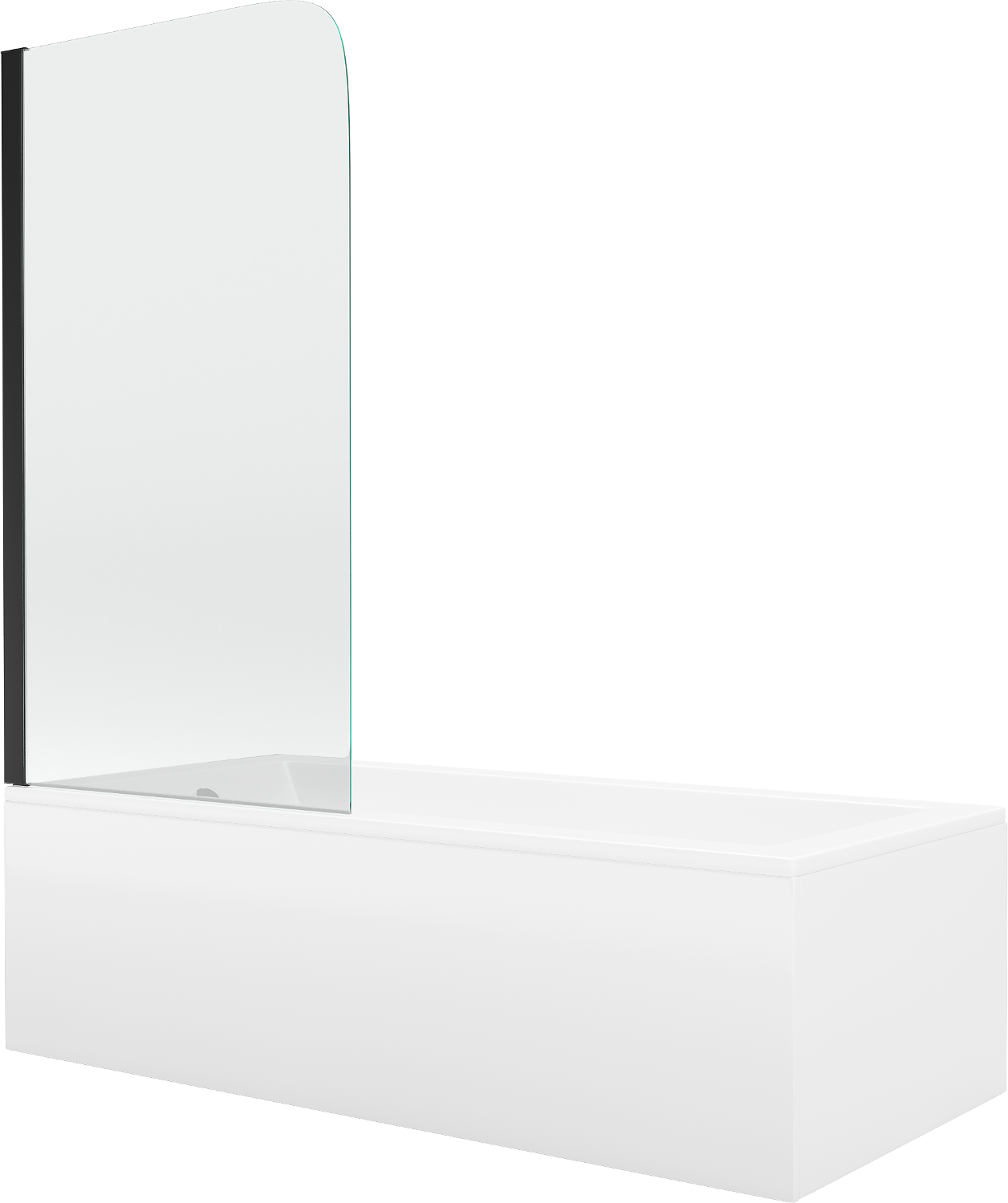 Mexen Cubik правоъгълна вана 170 x 70 см с облицовка и 1-крилен параван 70 см, прозрачен, черен - 550317070X9007017000