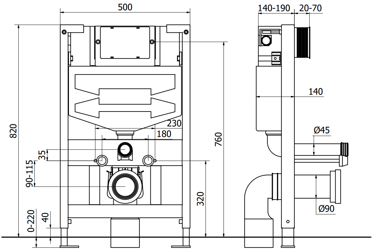 Възможността за регулиране на височината на рамката позволява по-добро адаптиране към различни технически условия в банята. Гъвкавият диапазон на регулиране осигурява удобство при монтаж и постигане на оптимална височина на рамката.