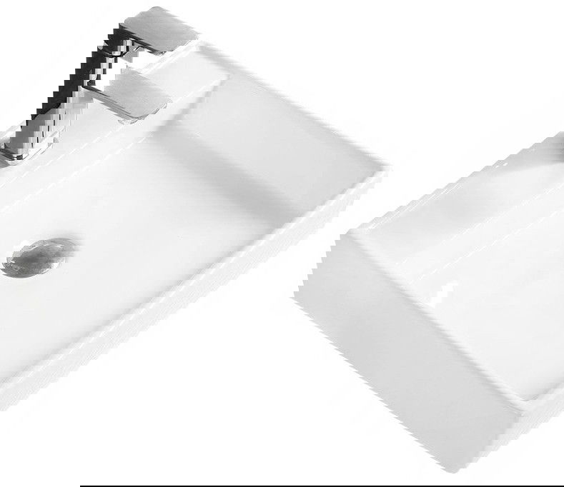 Мивката има дупка, в която можем да монтираме батерията. Това спестява ценно пространство в банята и подчертава естетиката му. Това решение също ви позволява лесно да се държите чисти около мивката.