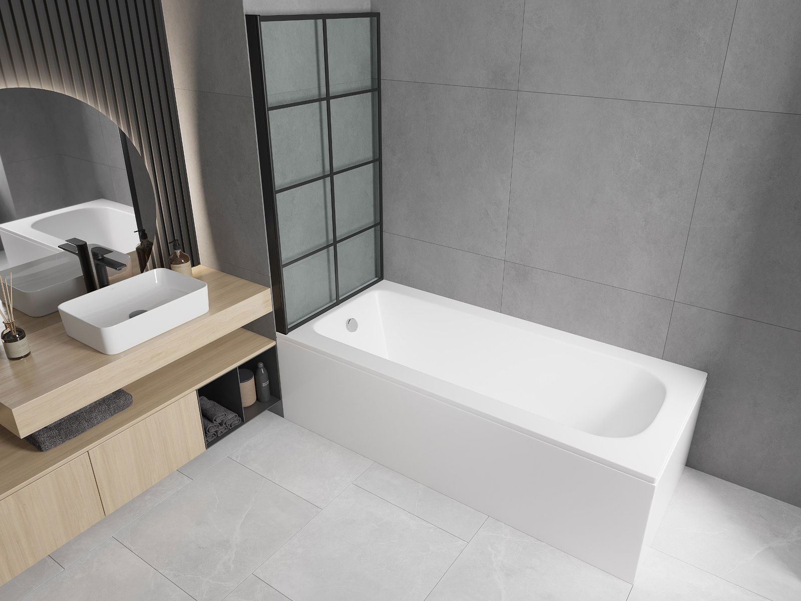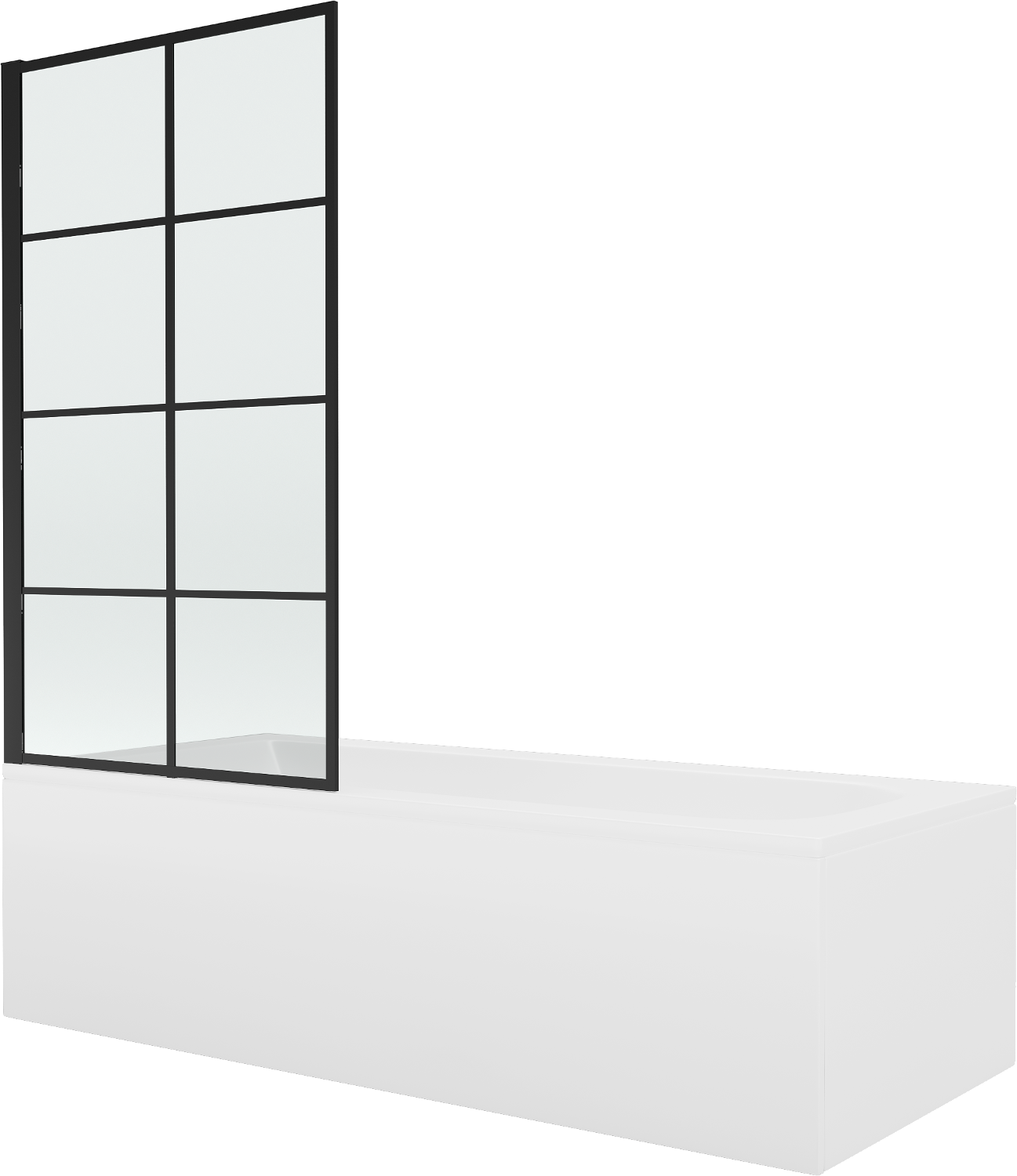 Mexen Vega правоъгълна вана 180 x 80 см с обшивка и 1-крилен параван 80 см, черен