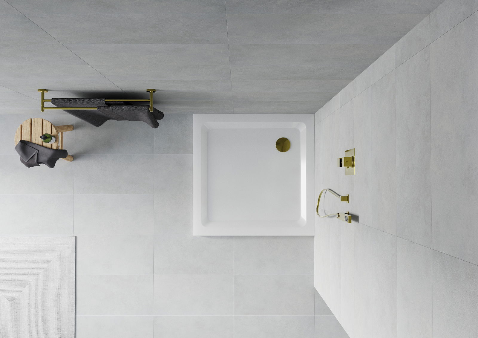 Mexen Flat квадратен душ корито слим 100 x 100 cm, бяло, златен сифон - 40101010G
