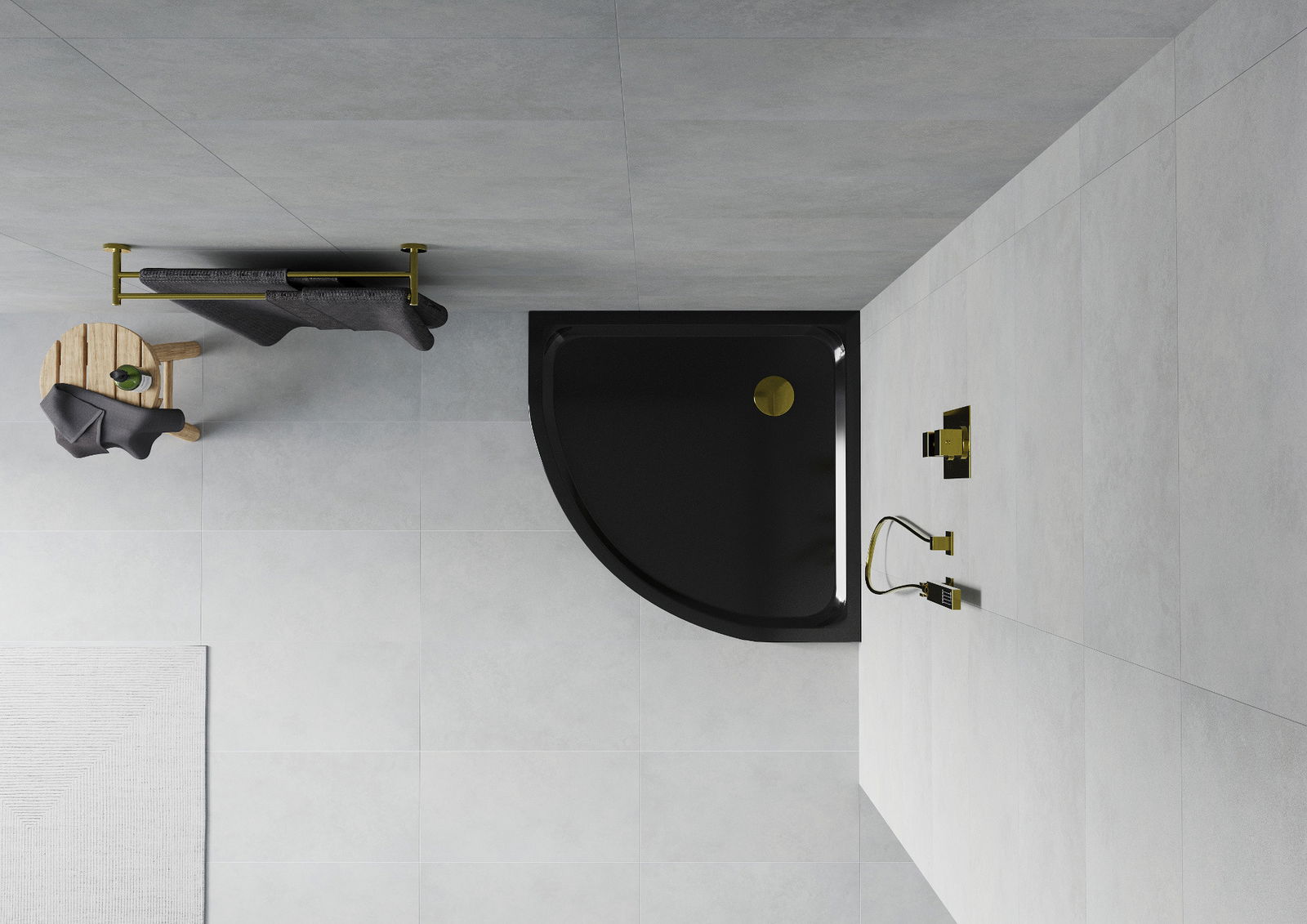 Mexen Flat полукръгъл плосък душ-корито 70 x 70 см, черен, сифон златен - 41707070G