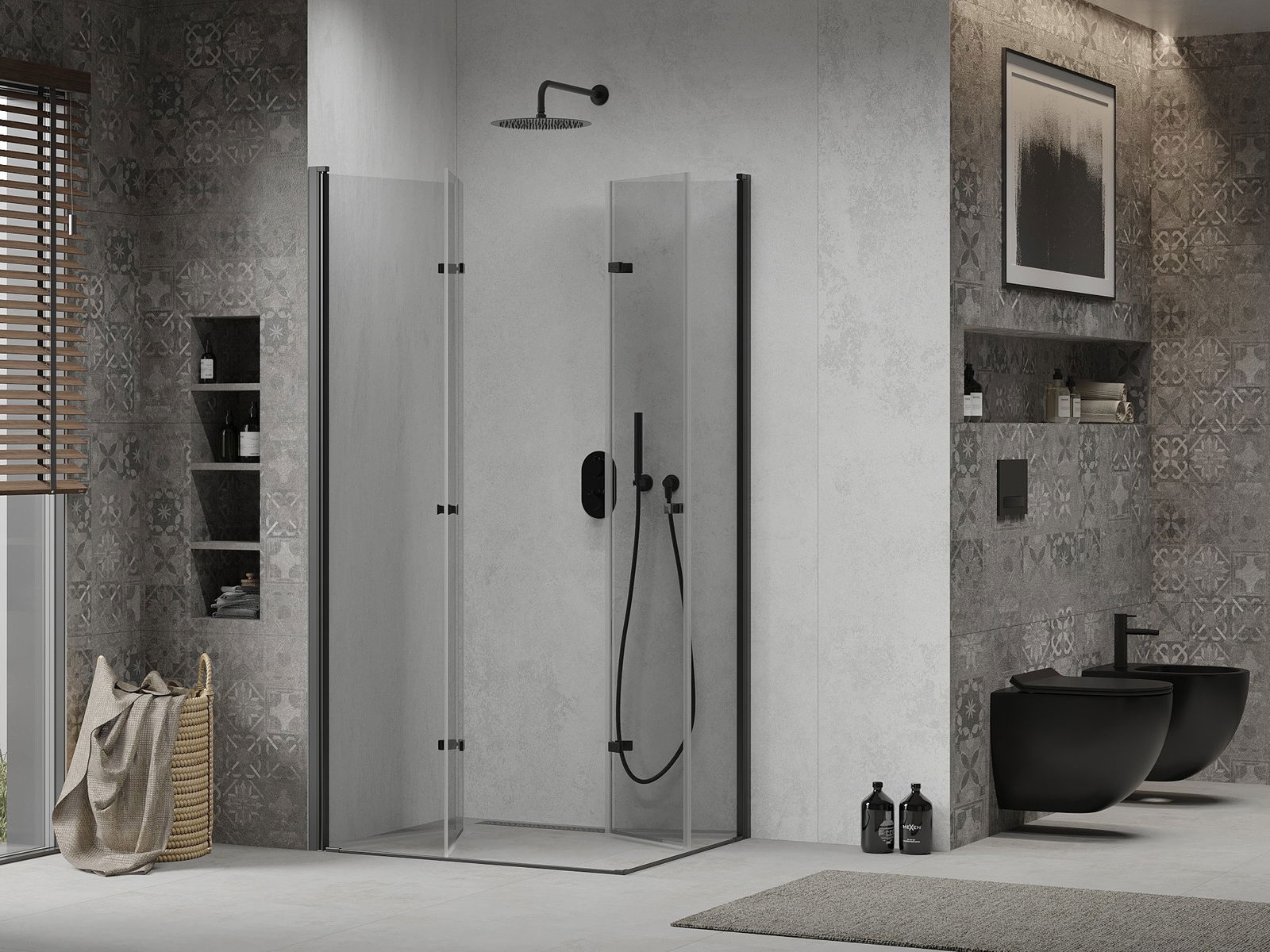 Mexen Lima Duo сгъваема душ кабина 80 x 70 см, прозрачна, черна - 856-080-070-70-00-02