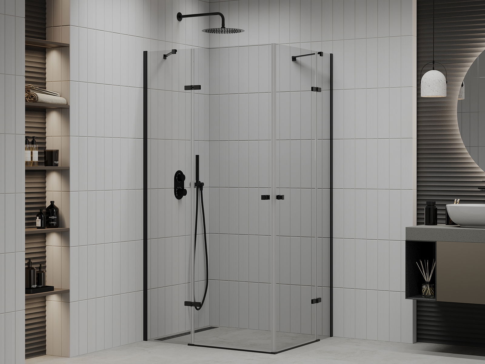 Mexen Roma Duo стъклена душ кабина с врата 90 x 80 см, прозрачна, черна - 854-090-080-70-00-02