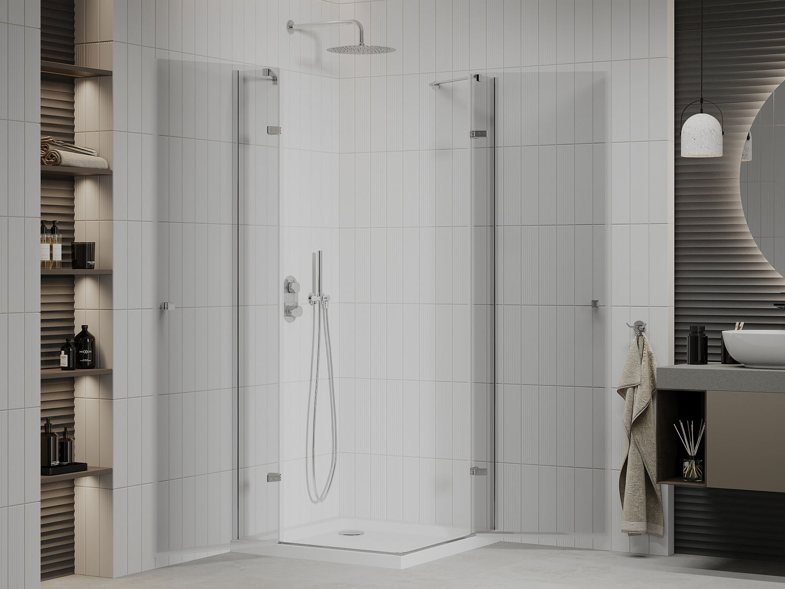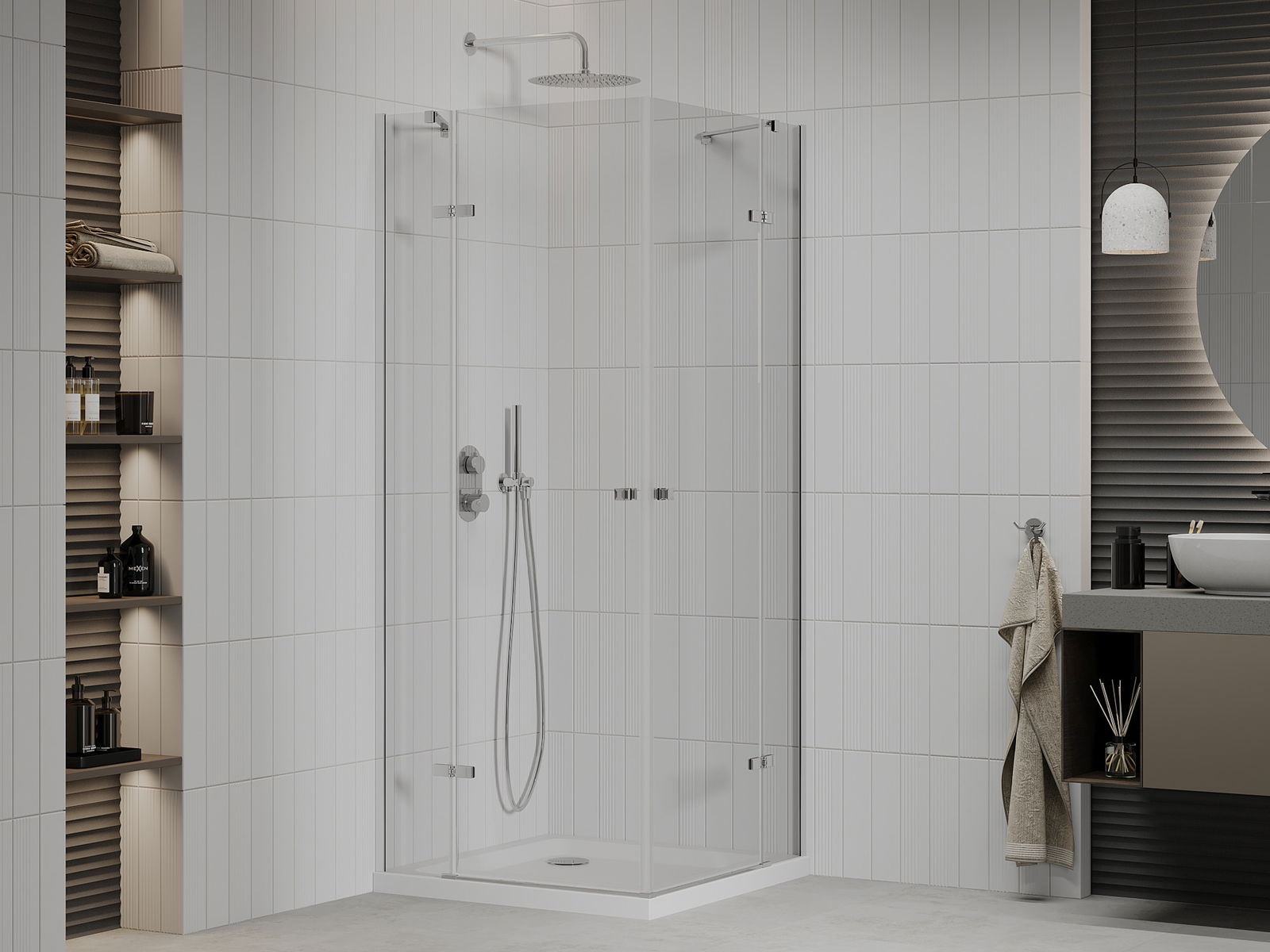Mexen Roma Двойна душ кабина с врати 80 x 80 см, прозрачна, хром + плитка Flat