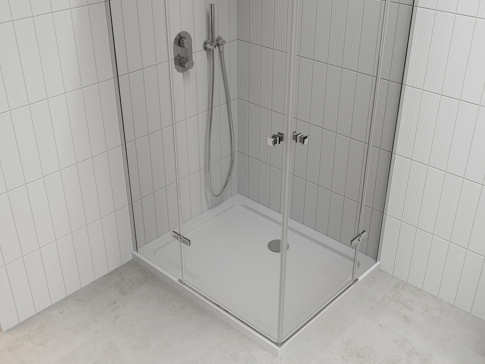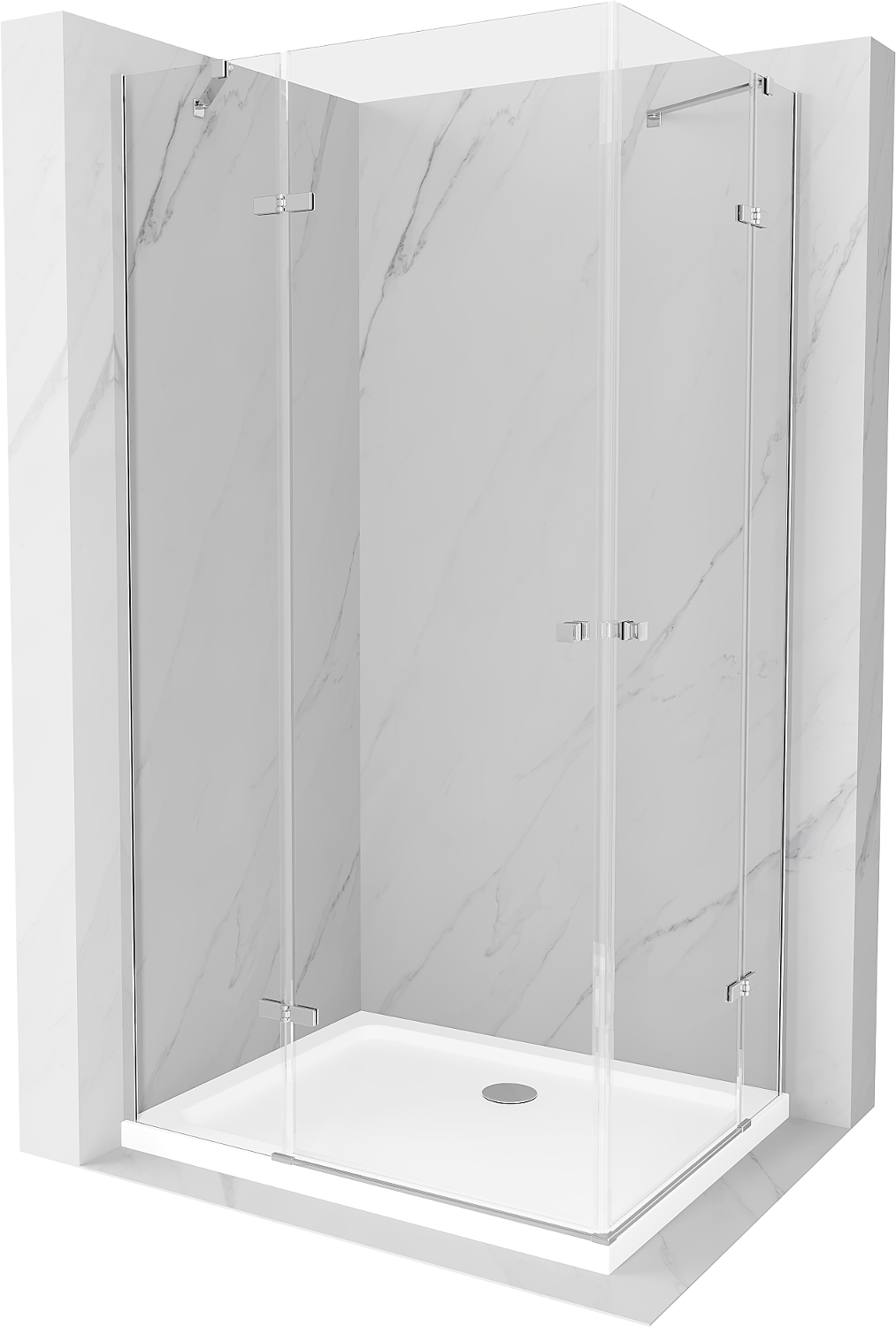 Mexen Roma Duo панел за душ кабина с врата 100 x 90 см, прозрачен, хром + поддушова тавичка Flat - 854-100-090-01-02-4010