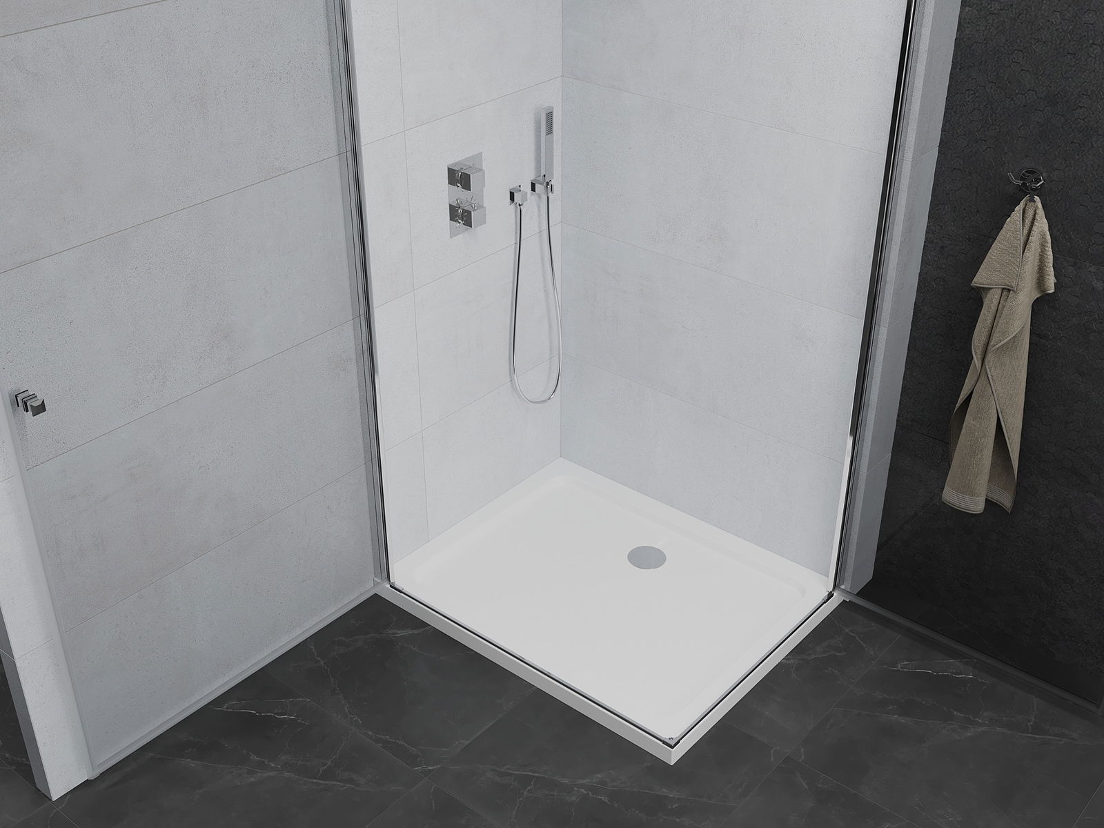 Удобната и удобна дръжка беше направена от траен и устойчив метал. Модната форма, комбинирана с покритие, съобразено с цвета на профилите, придава на целия модерен и стилен вид, подчертавайки естетиката на всяка баня.