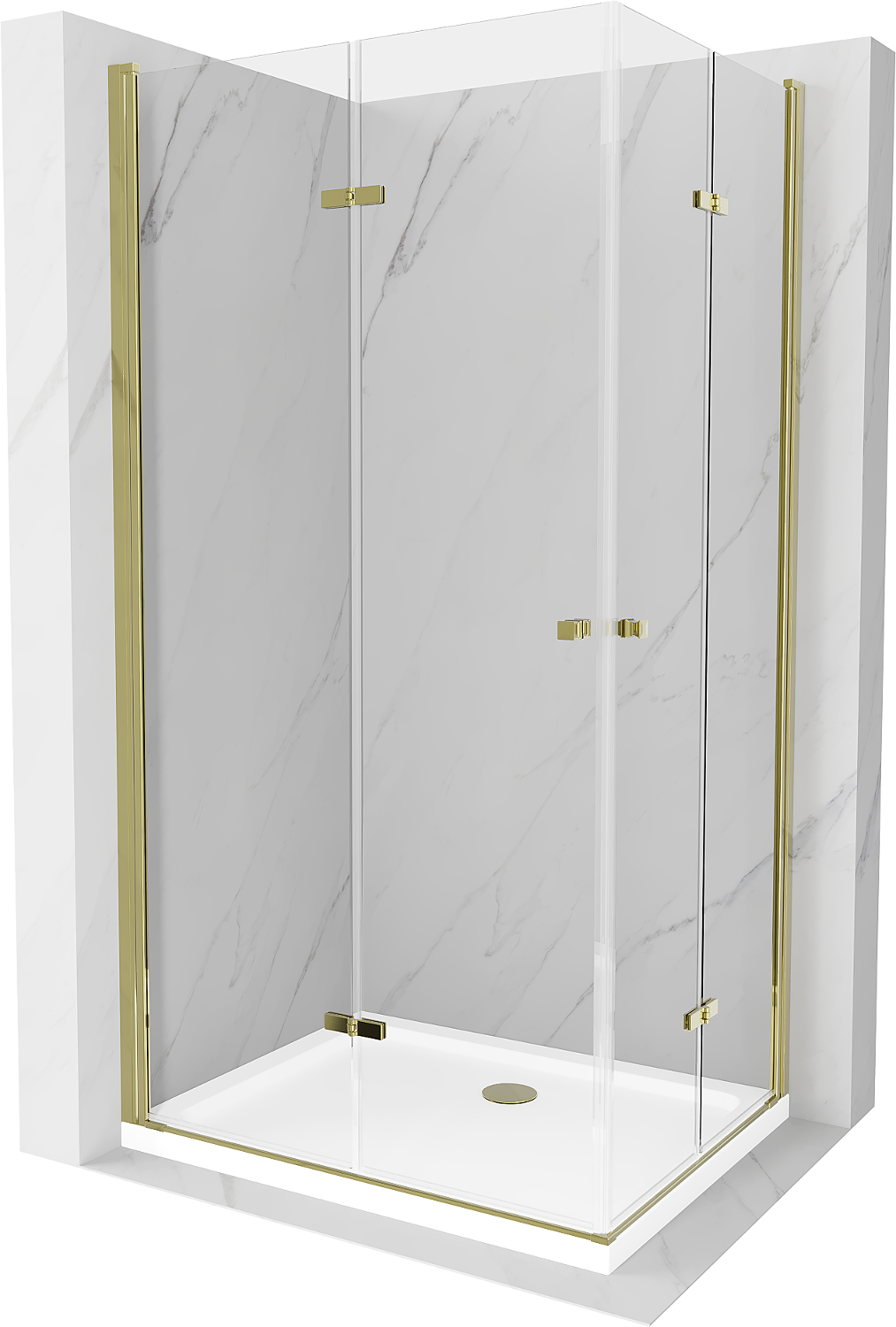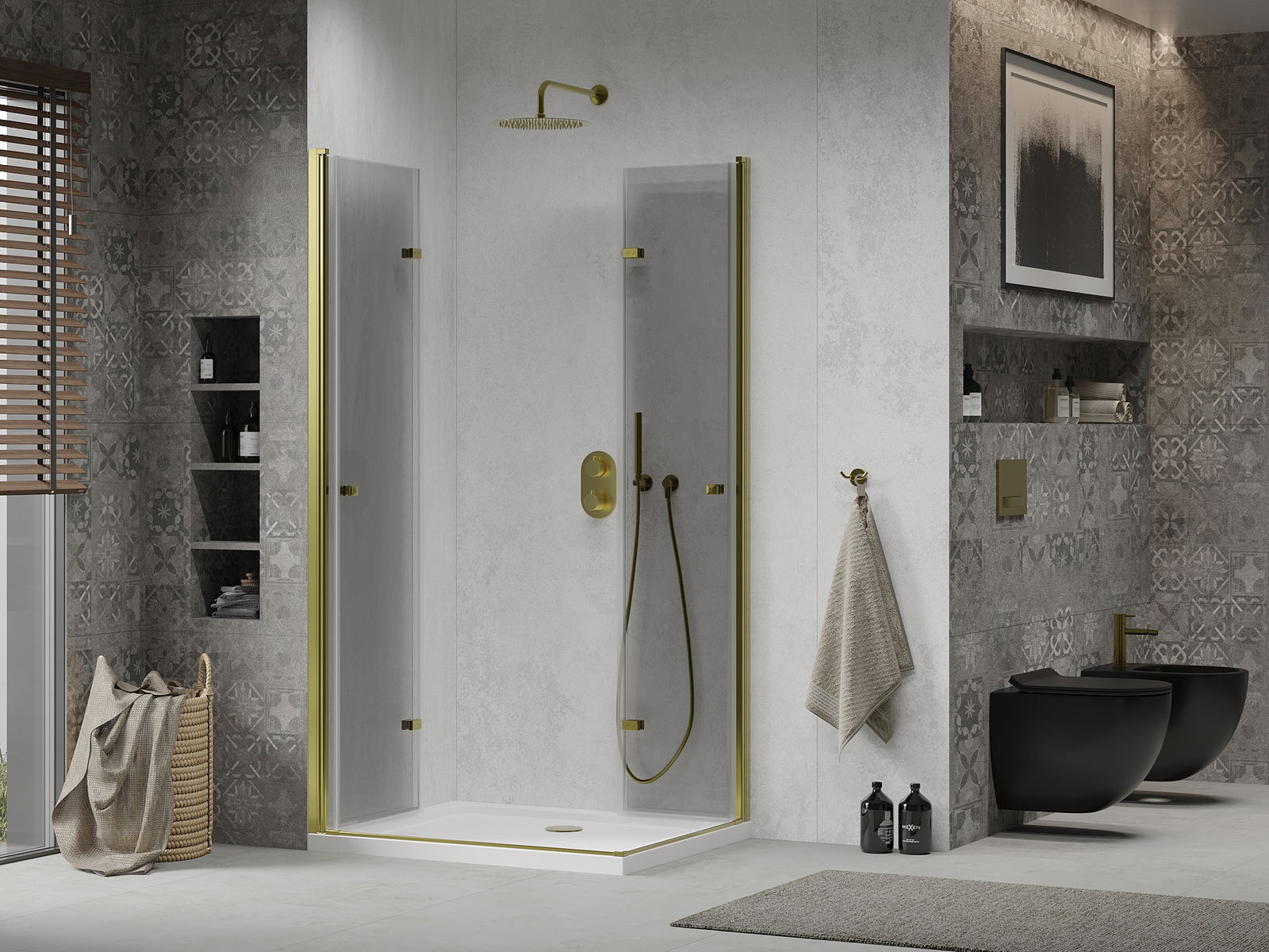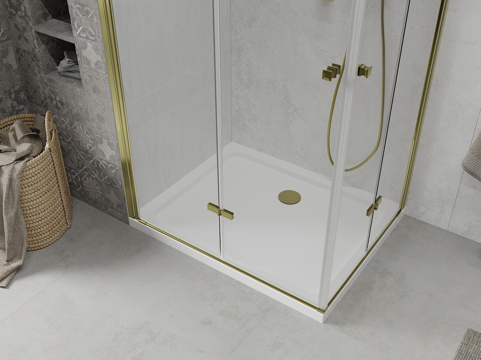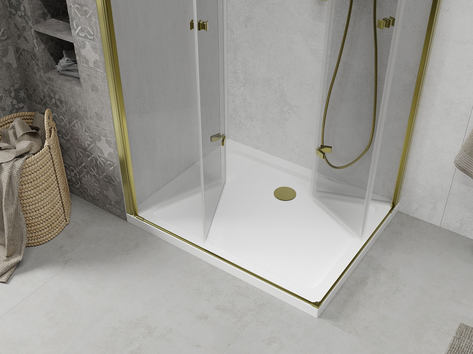 Mexen Lima Duo сгъваема душ кабина 90 x 80 см, прозрачна, златна + корито Flat - 856-090-080-50-02-4010G
