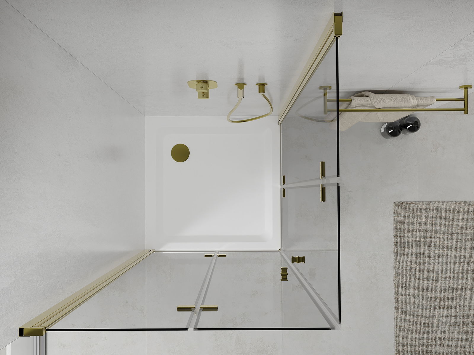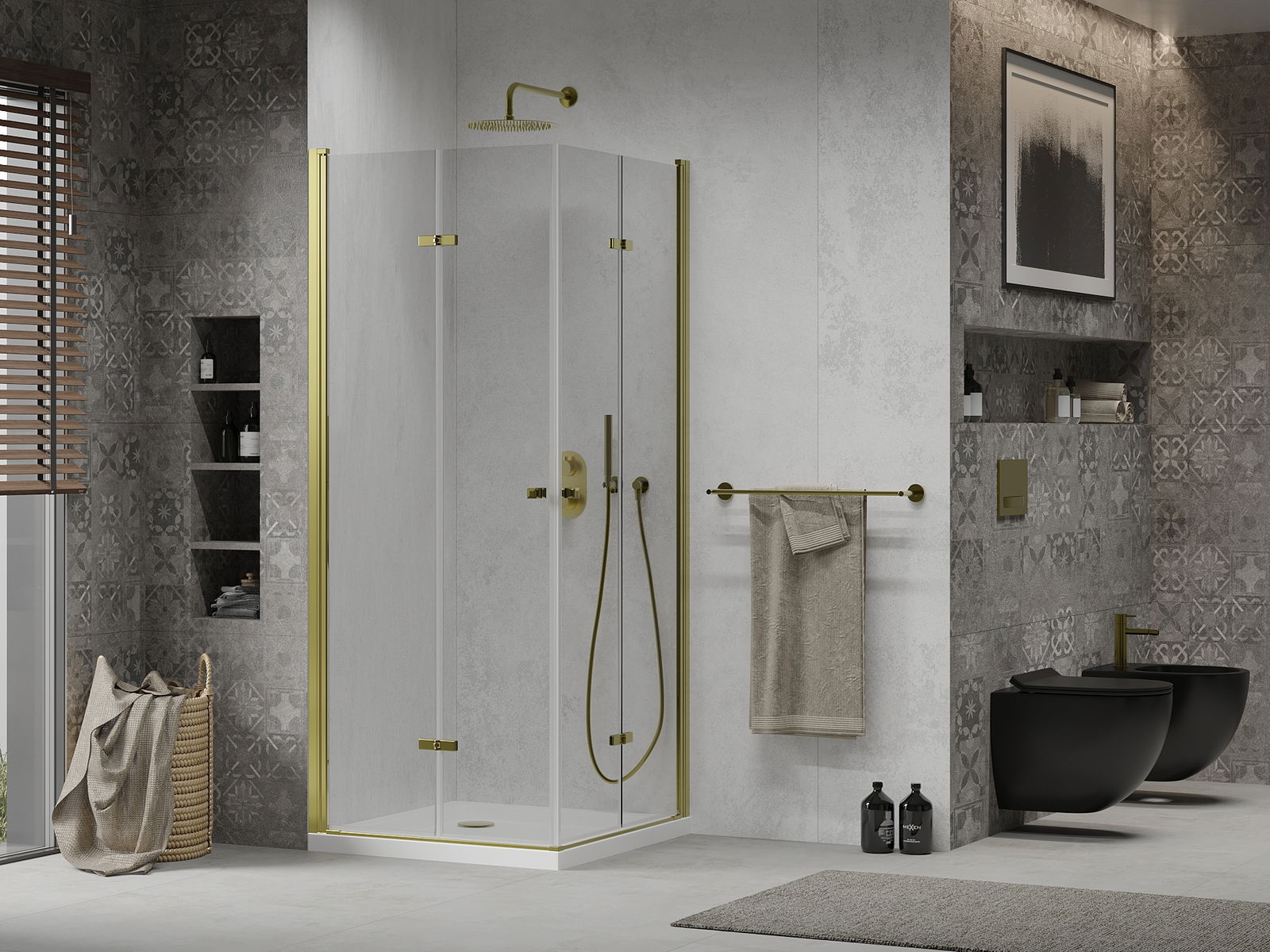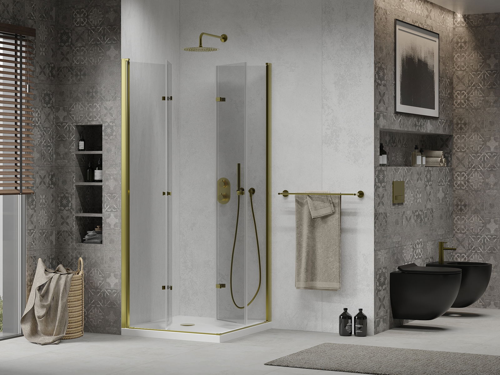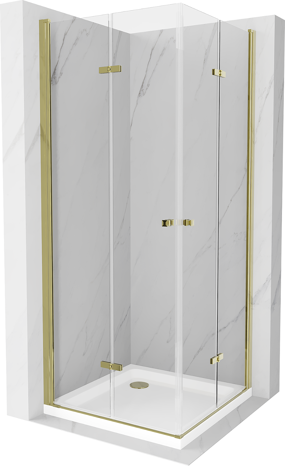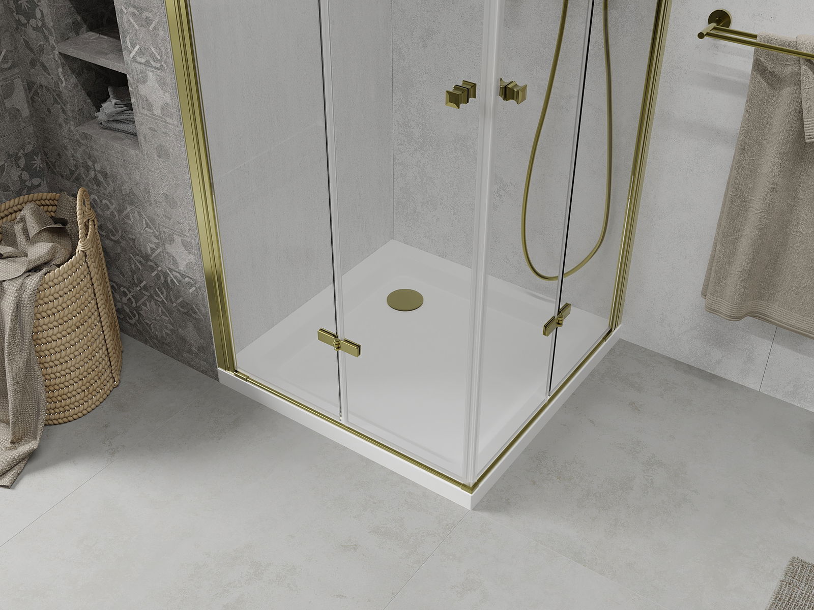 Mexen Lima Duo сгъваема душ кабина 100 x 100 см, прозрачна, златна + поддушово корито Flat - 856-100-100-50-02-4010G