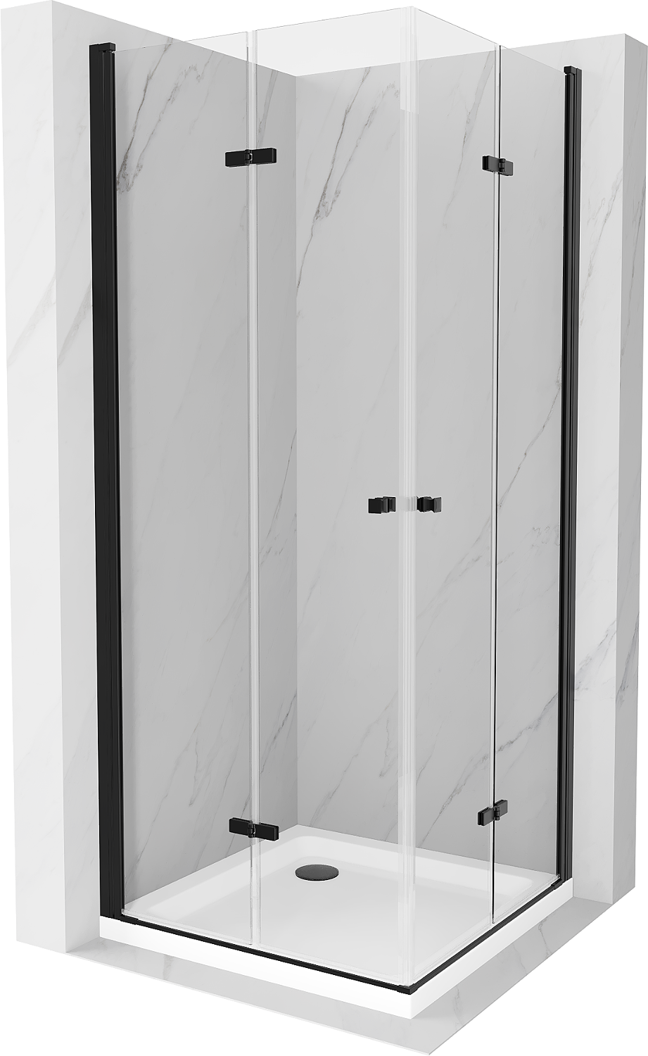 Mexen Lima Duo преграда за душ кабина сгъваема 70 x 70 см, прозрачна, черна + поддушово корито Flat - 856-070-070-70-02-4010B