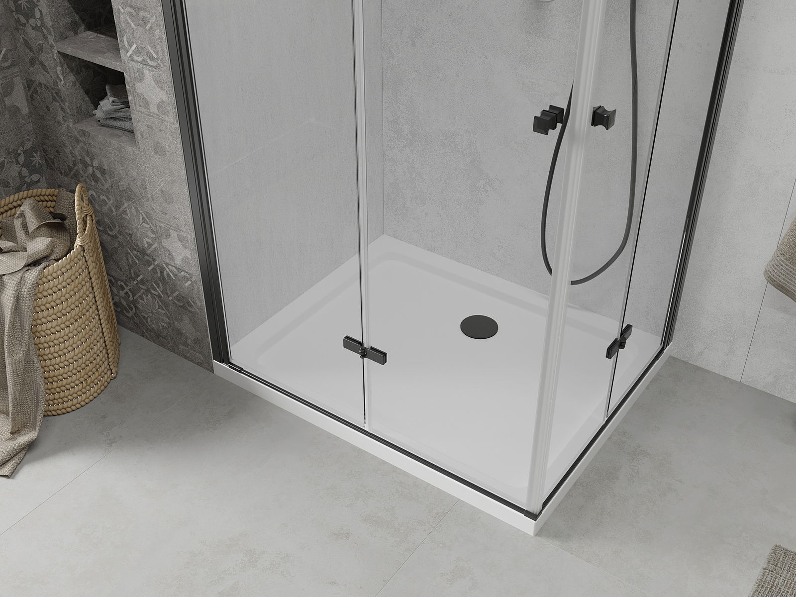 Mexen Lima Duo преградна кабина сгъваема 90 x 80 см, прозрачна, черна + корито Flat - 856-090-080-70-02-4010B