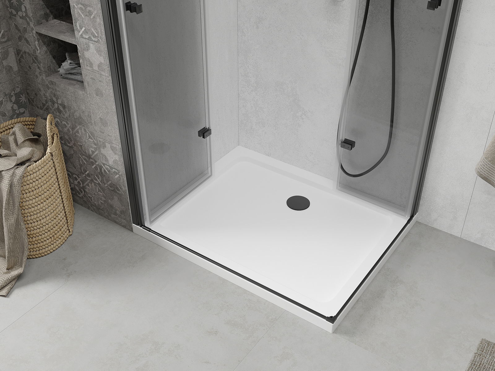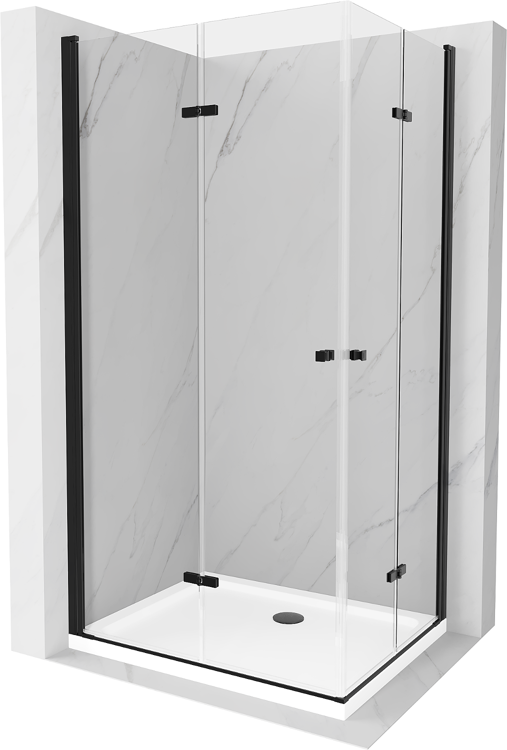 Mexen Lima Duo сгъваема душ кабина 100 x 90 см, прозрачно, черна + тавичка Flat - 856-100-090-70-02-4010B