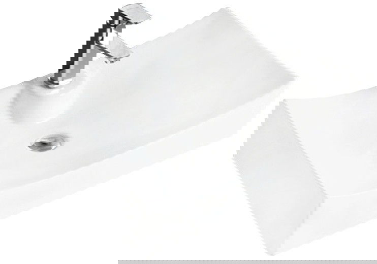 Мивката има дупка, в която можем да монтираме батерията. Това спестява ценно пространство в банята и подчертава естетиката му. Това решение също ви позволява лесно да се държите чисти около мивката.