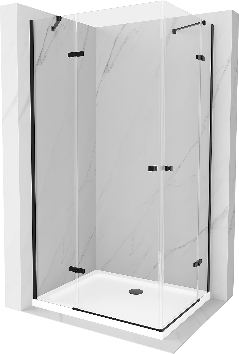 Mexen Roma Duo душ кабина с отваряща се врата 80 x 70 cm, прозрачна, черна + корито Flat - 854-080-070-70-02-4010B