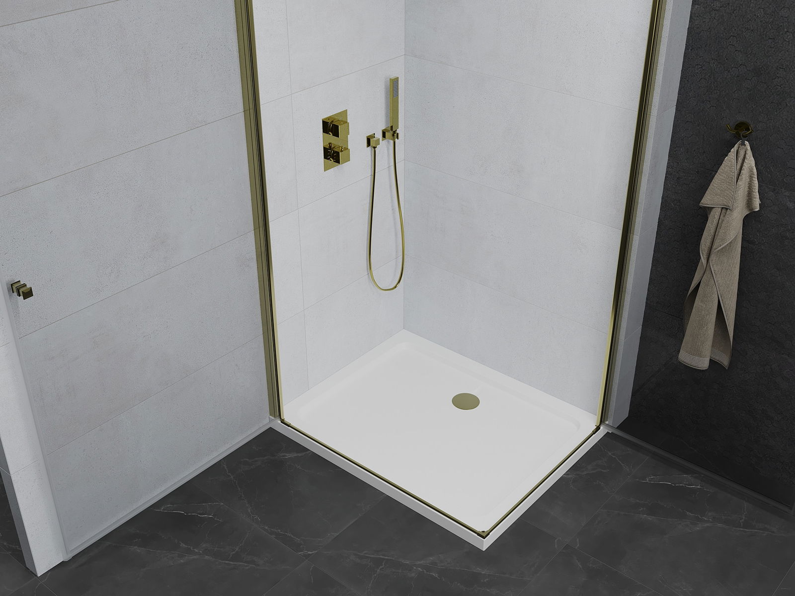 Mexen Pretoria Duo отваряща се душ кабина 90 x 80 см, прозрачна, златна + плосък поддушов коритo - 852-090-080-50-02-4010G