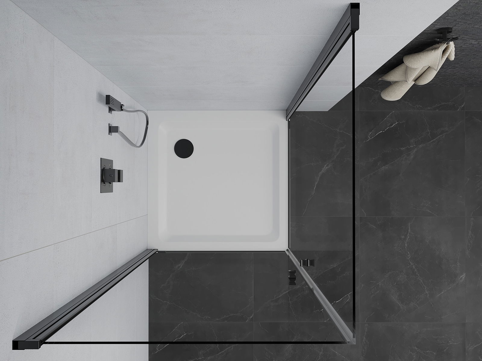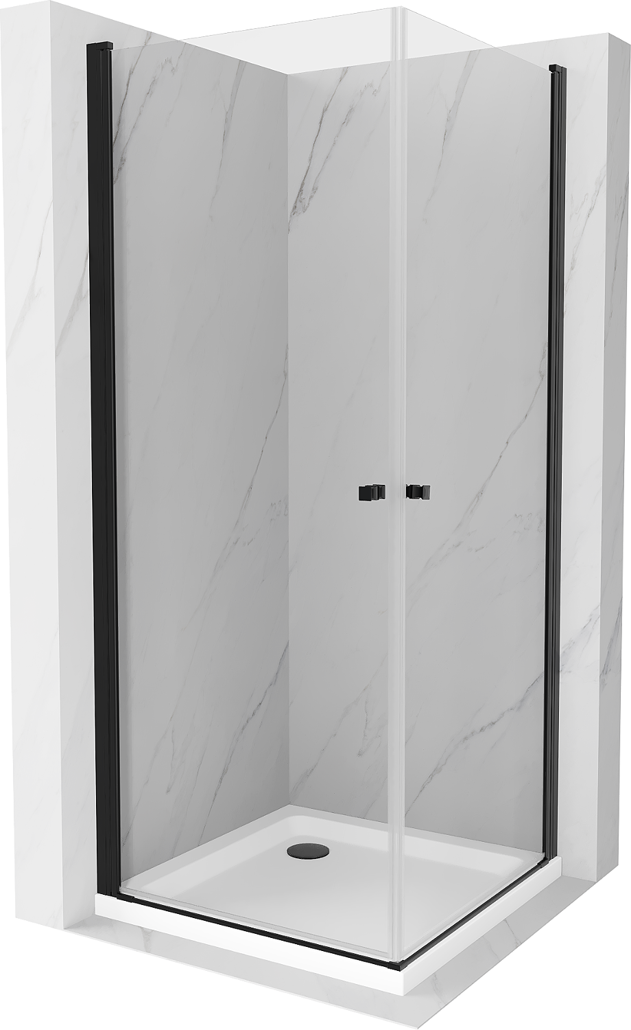 Mexen Pretoria Duo Душ кабина с отварящи врати 90 x 90 см, прозрачна, черна + корито Flat - 852-090-090-70-02-4010B