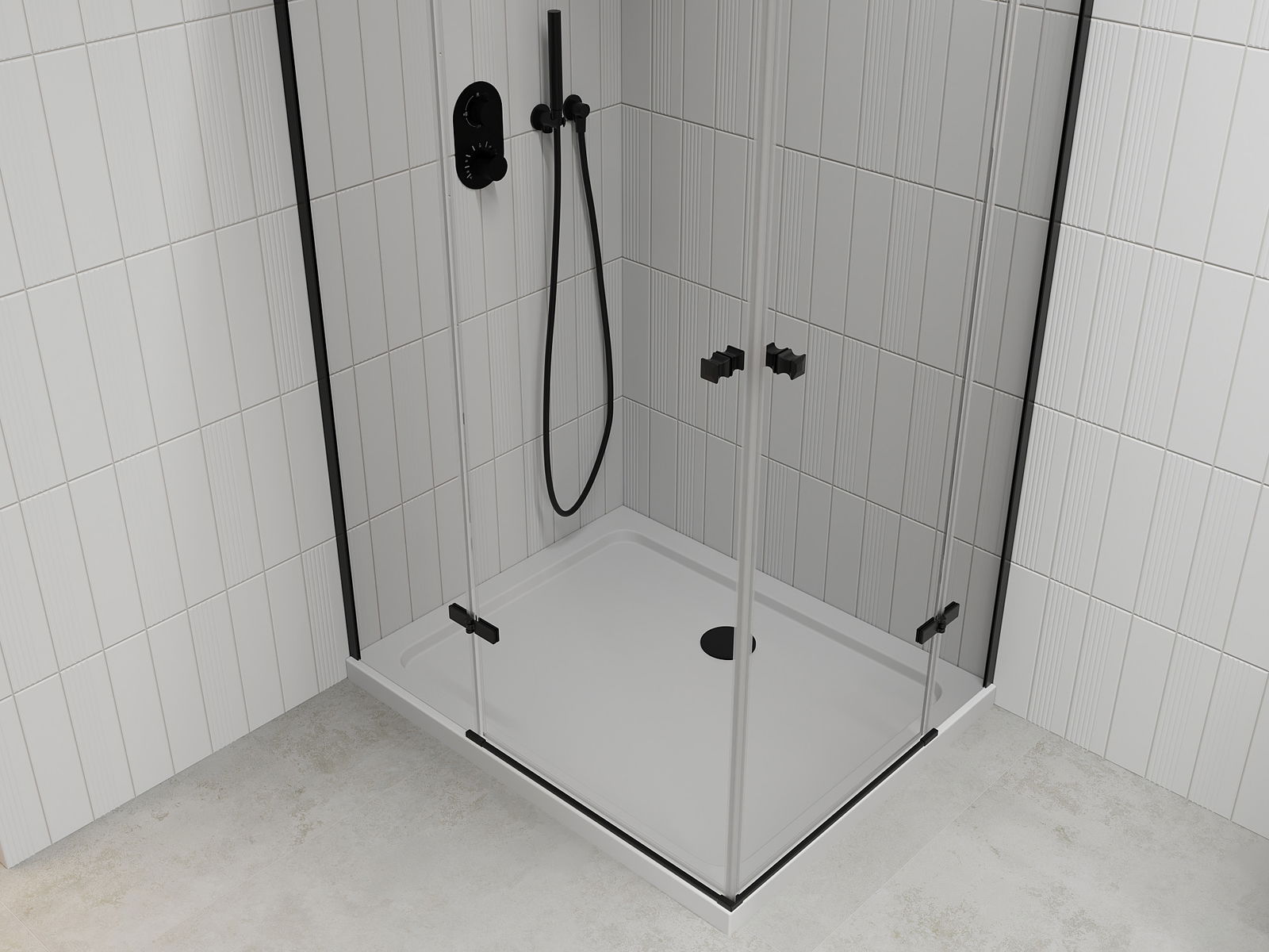 Mexen Roma Duo сгъваема душ кабина 90 x 80 см, прозрачна, черна + душ корито Flat - 854-090-080-70-02-4010B