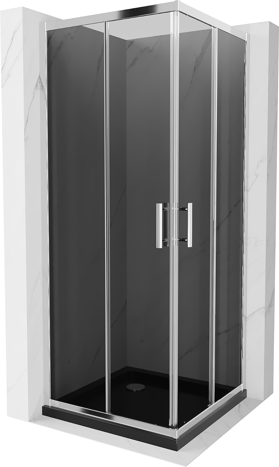 Mexen Rio квадратна душ кабина 90 x 90 см, графит, хром + поддушово корито Flat, черно - 860-090-090-01-40-4070