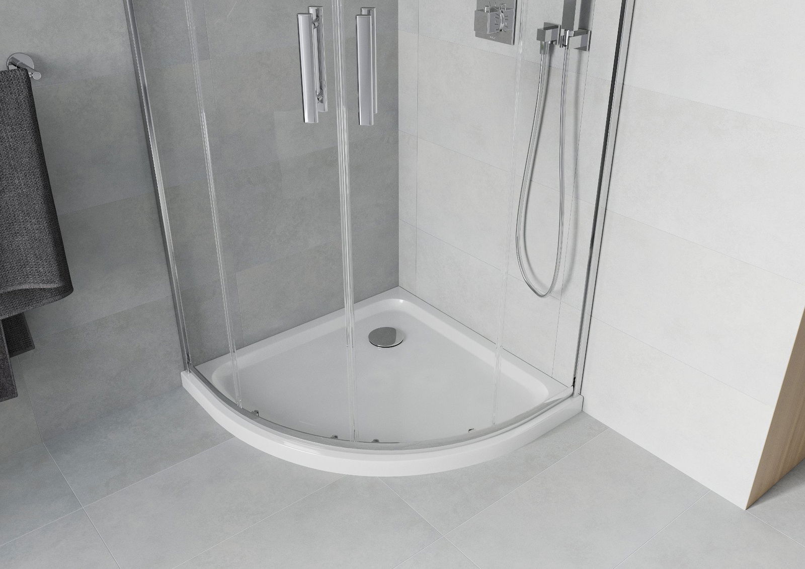 Прагът на запечатване осигурява ефективна защита срещу отток на водата извън душа, предпазвайки банята от наводнение. Благодарение на алуминия, прагът на уплътняване е устойчив на корозия и механично увреждане.