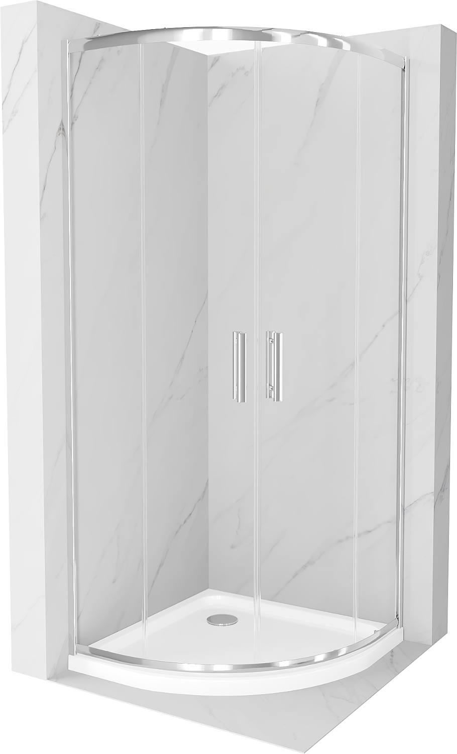 Душ кабина Mexen Rio полукръгла 90 x 90 см, прозрачна, хром + бял поддушник Flat - 863-090-090-01-00-4110