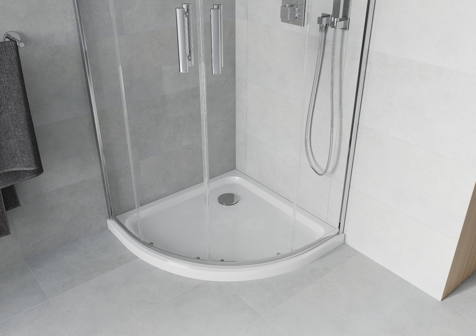 Mexen Rio душ кабина полукръгла 90 x 90 см, прозрачна, хром + корито Flat, бял