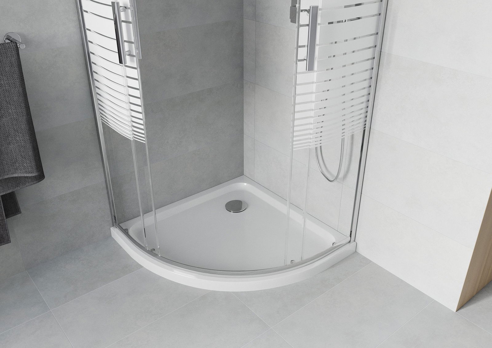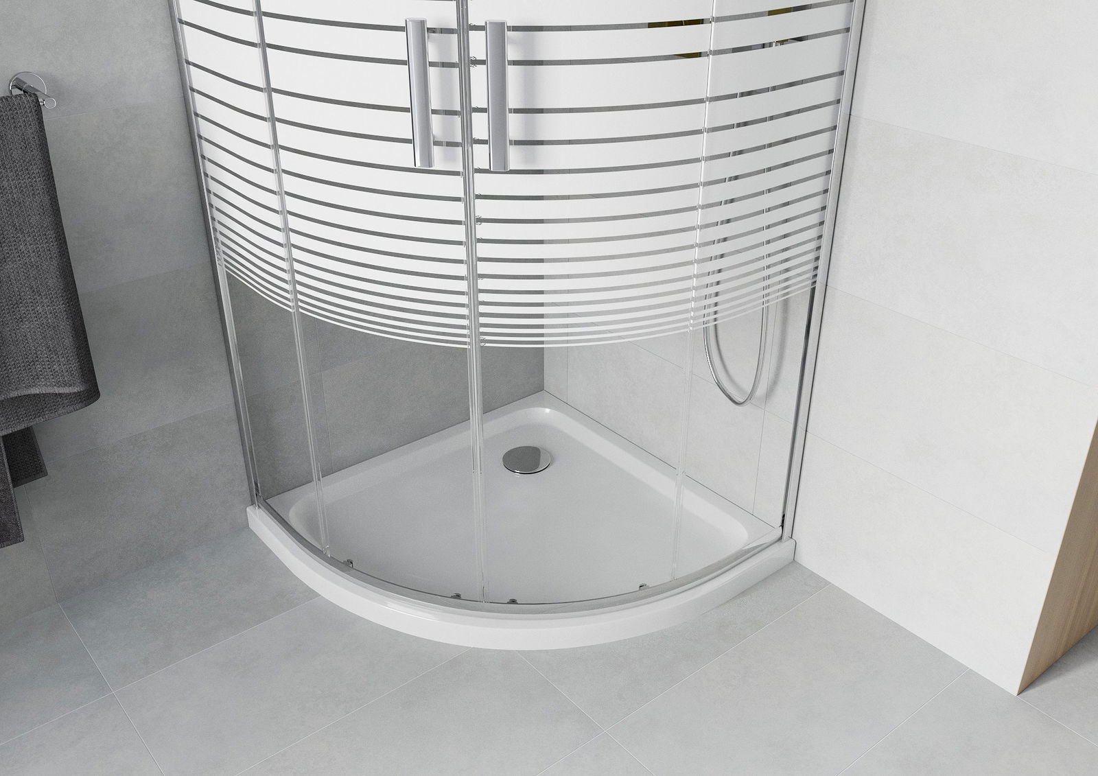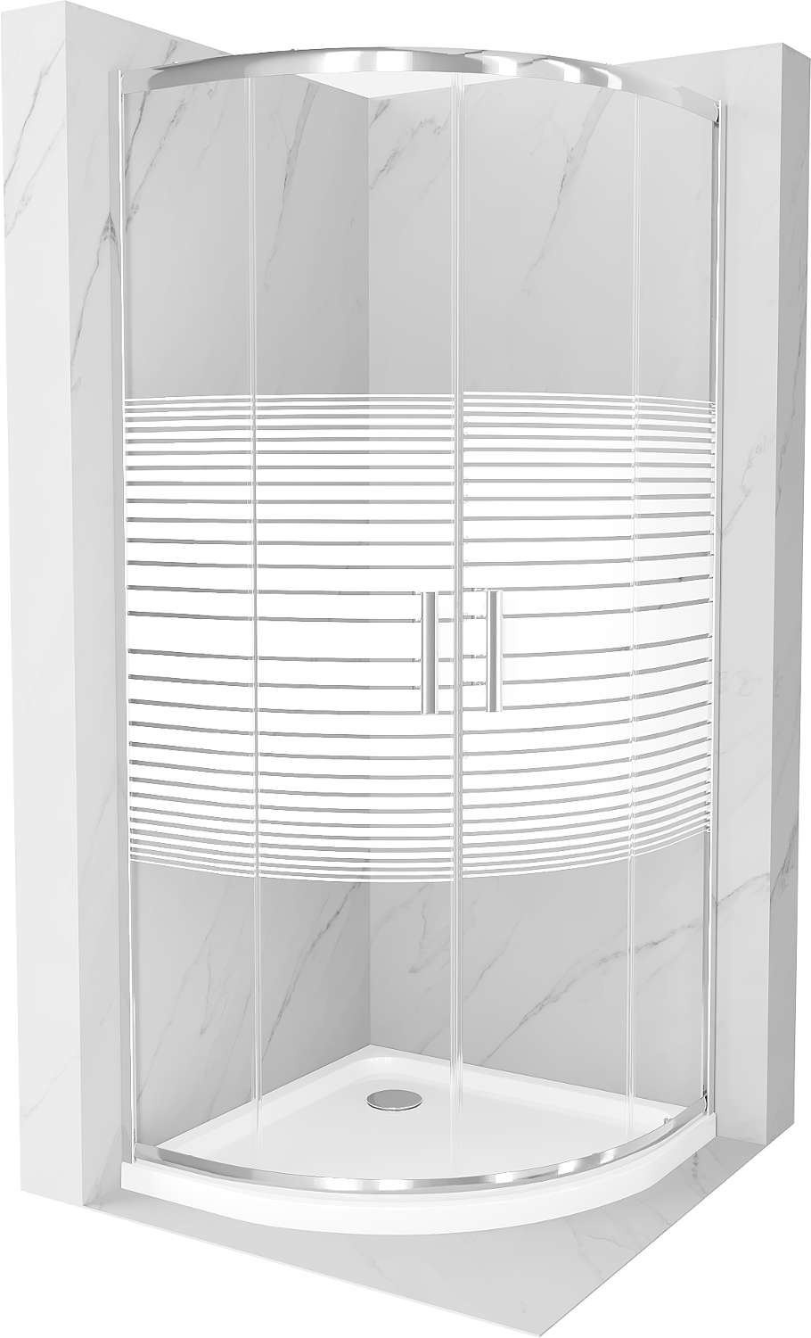 Mexen Rio полукръгла душ кабина 80 x 80 см, бели ивици, хром + корито Flat, бял - 863-080-080-01-20-4110