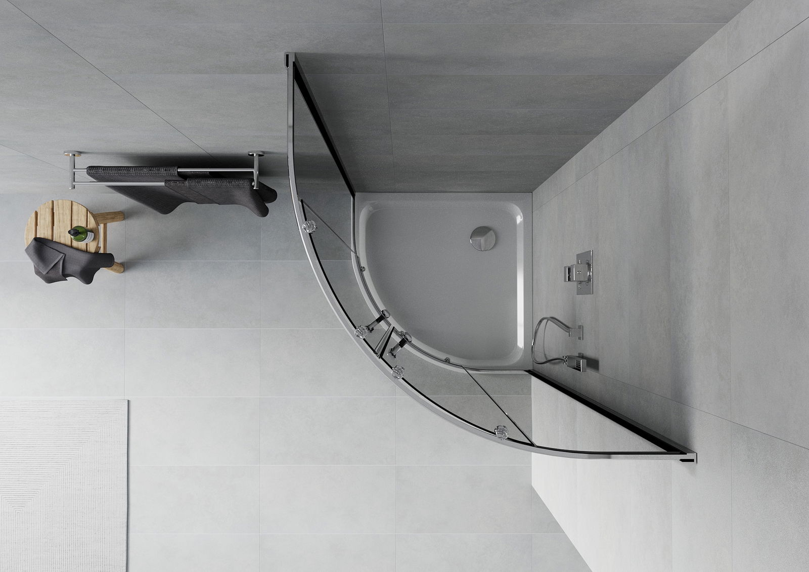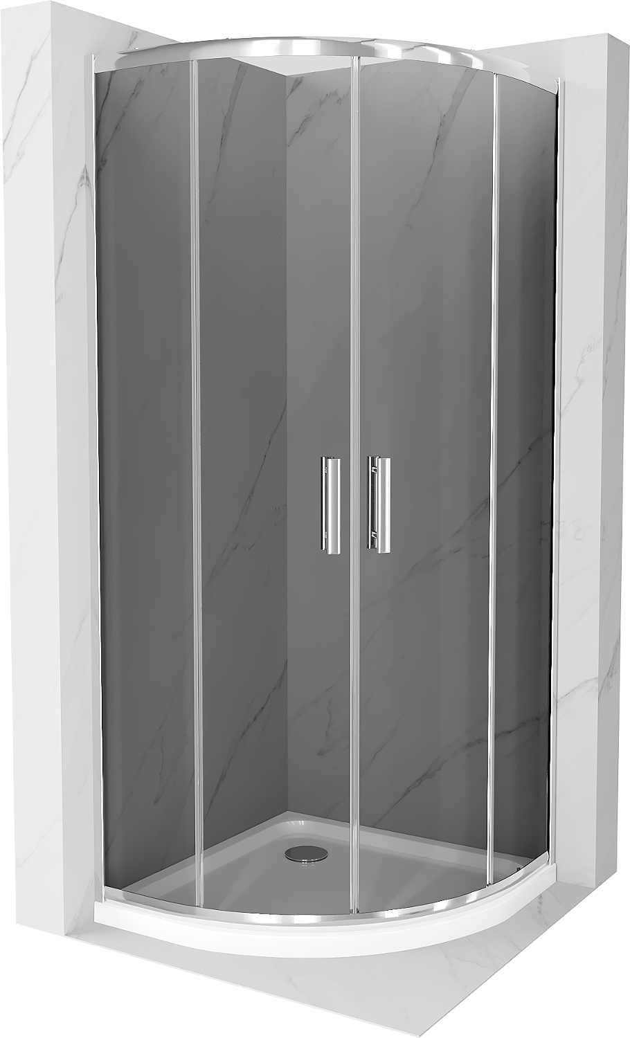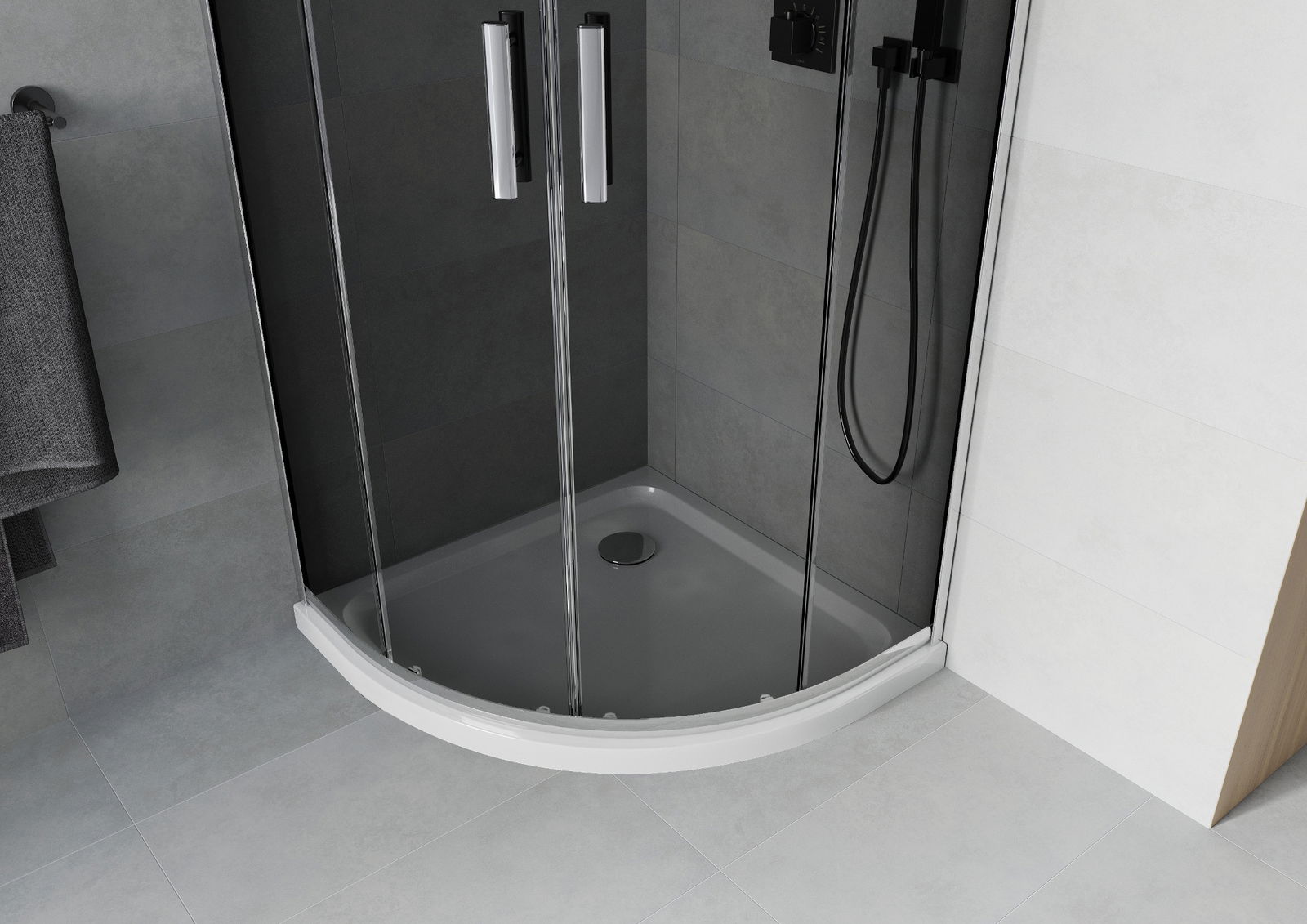 Mexen Rio полуокръгла душ кабина 80 x 80 см, графит, хром + поддушова тава Flat, бял - 863-080-080-01-40-4110