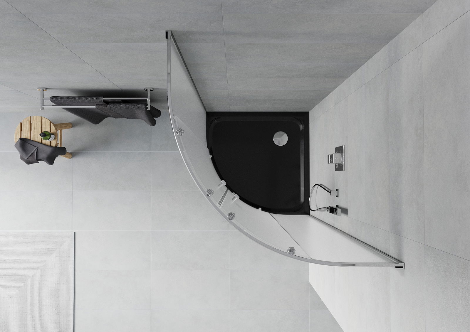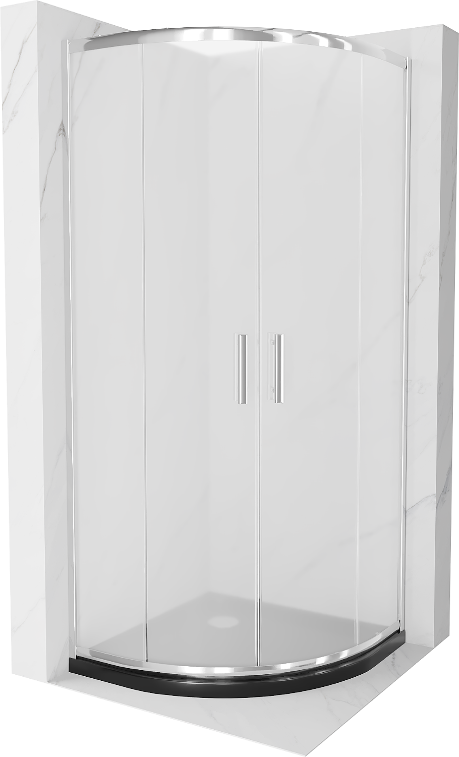 Mexen Rio полукръгла душ кабина 80 x 80 см, скреж, хром + плосък поддушов басейн, черен - 863-080-080-01-30-4170