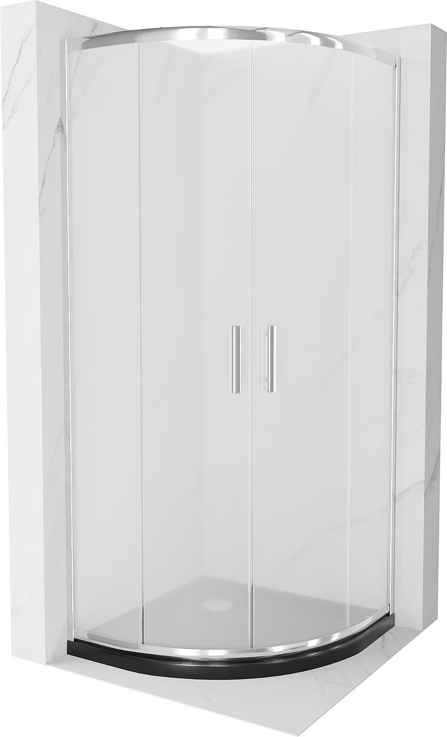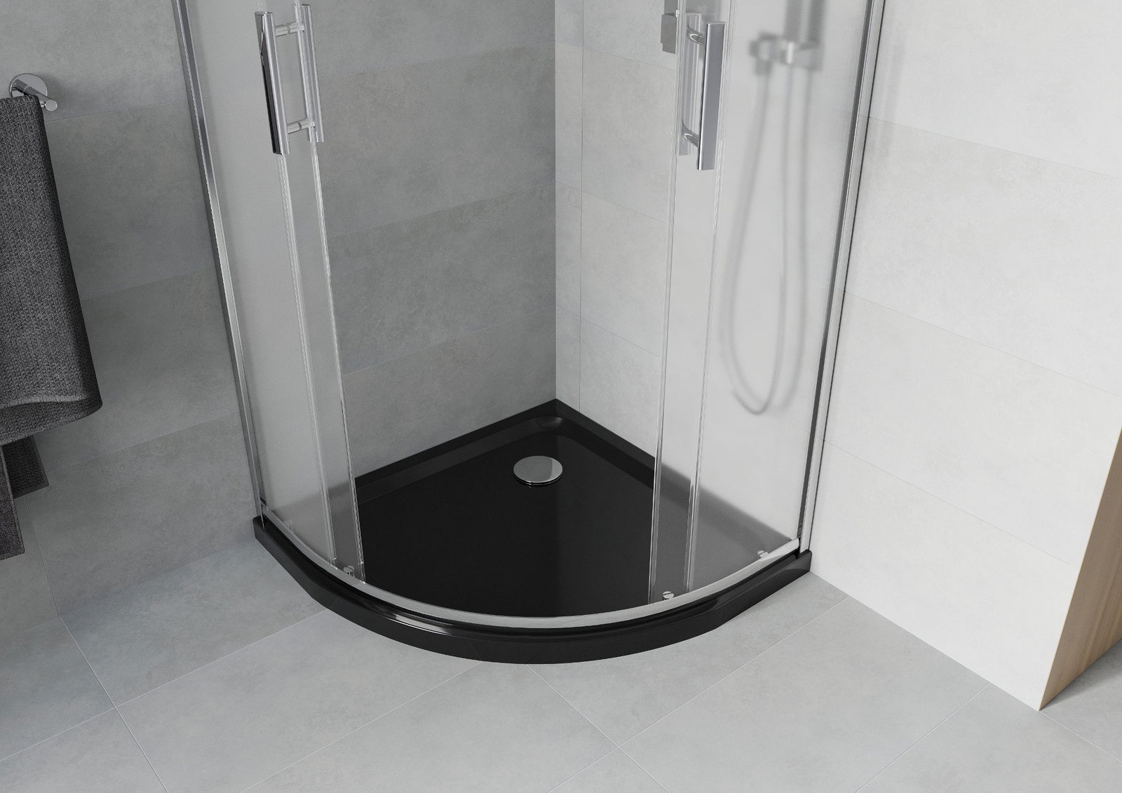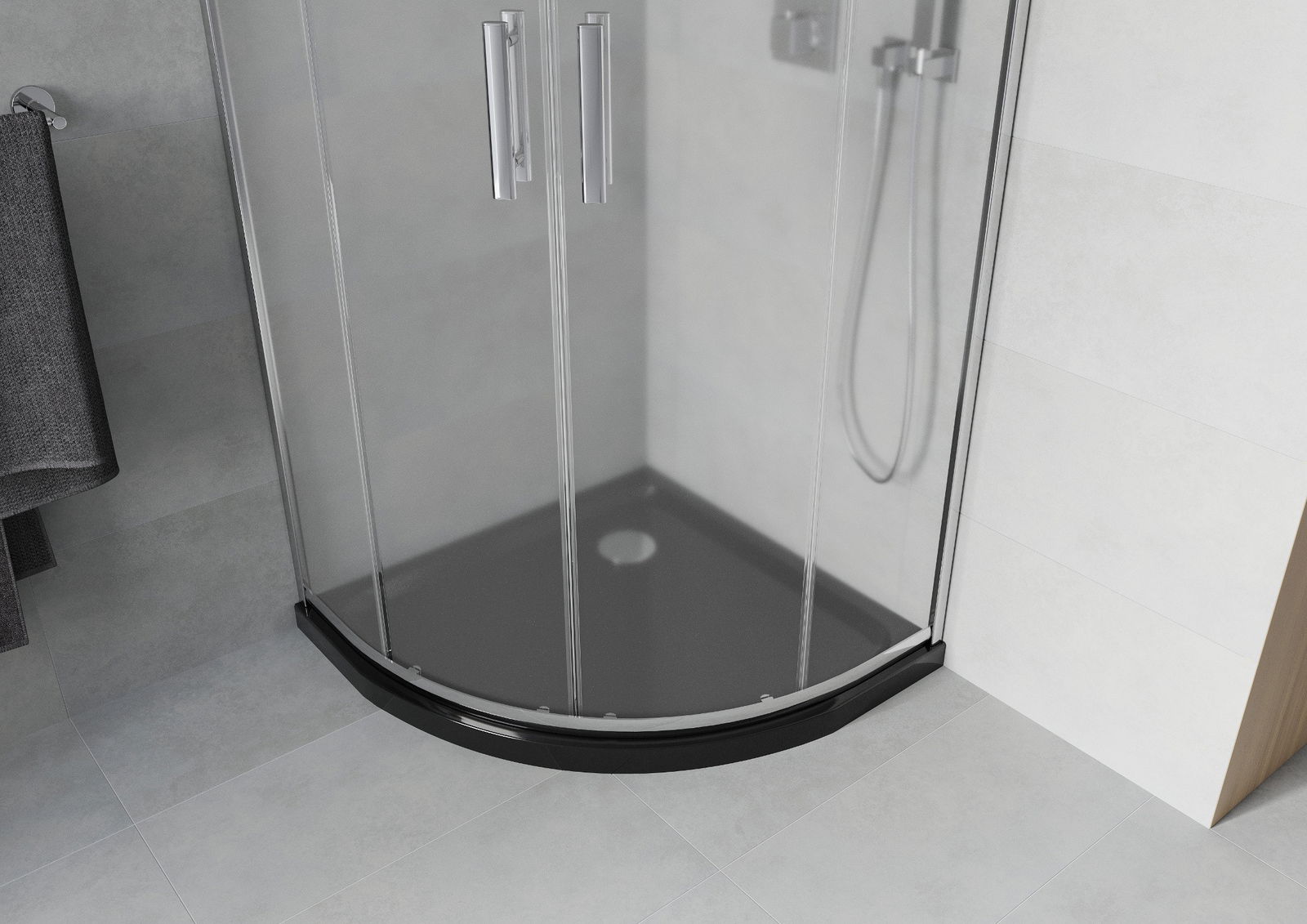 Mexen Rio Полукръгла душ кабина 90 x 90 см, матирано стъкло, хром + плосък душ корито, черен - 863-090-090-01-30-4170