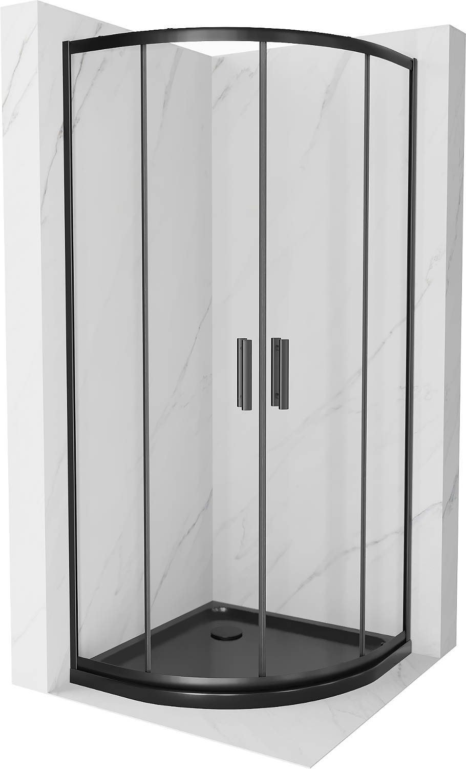 Mexen Rio полукръгла душ кабина 80 x 80 см, прозрачна, черна + душ корито Flat, черно - 863-080-080-70-00-4170B