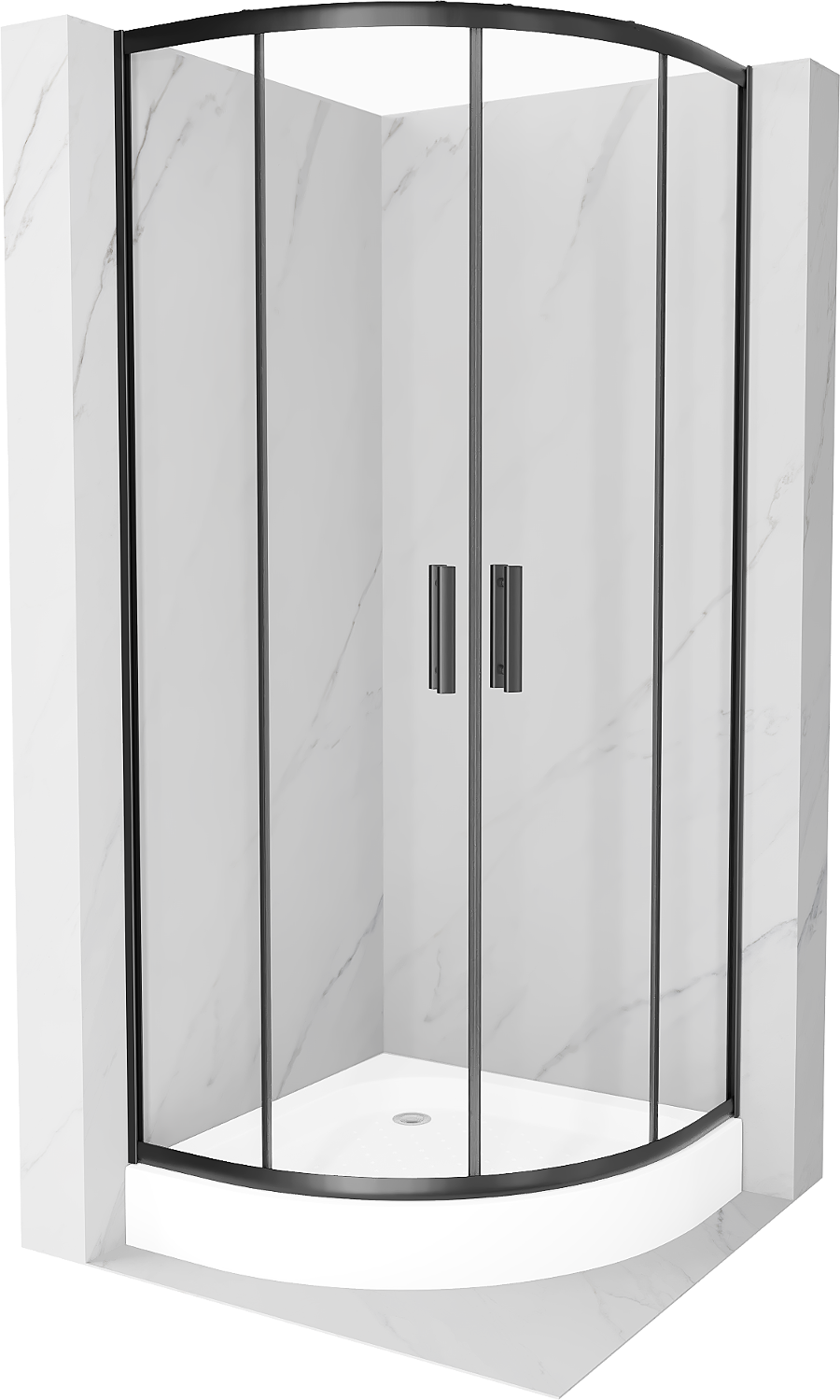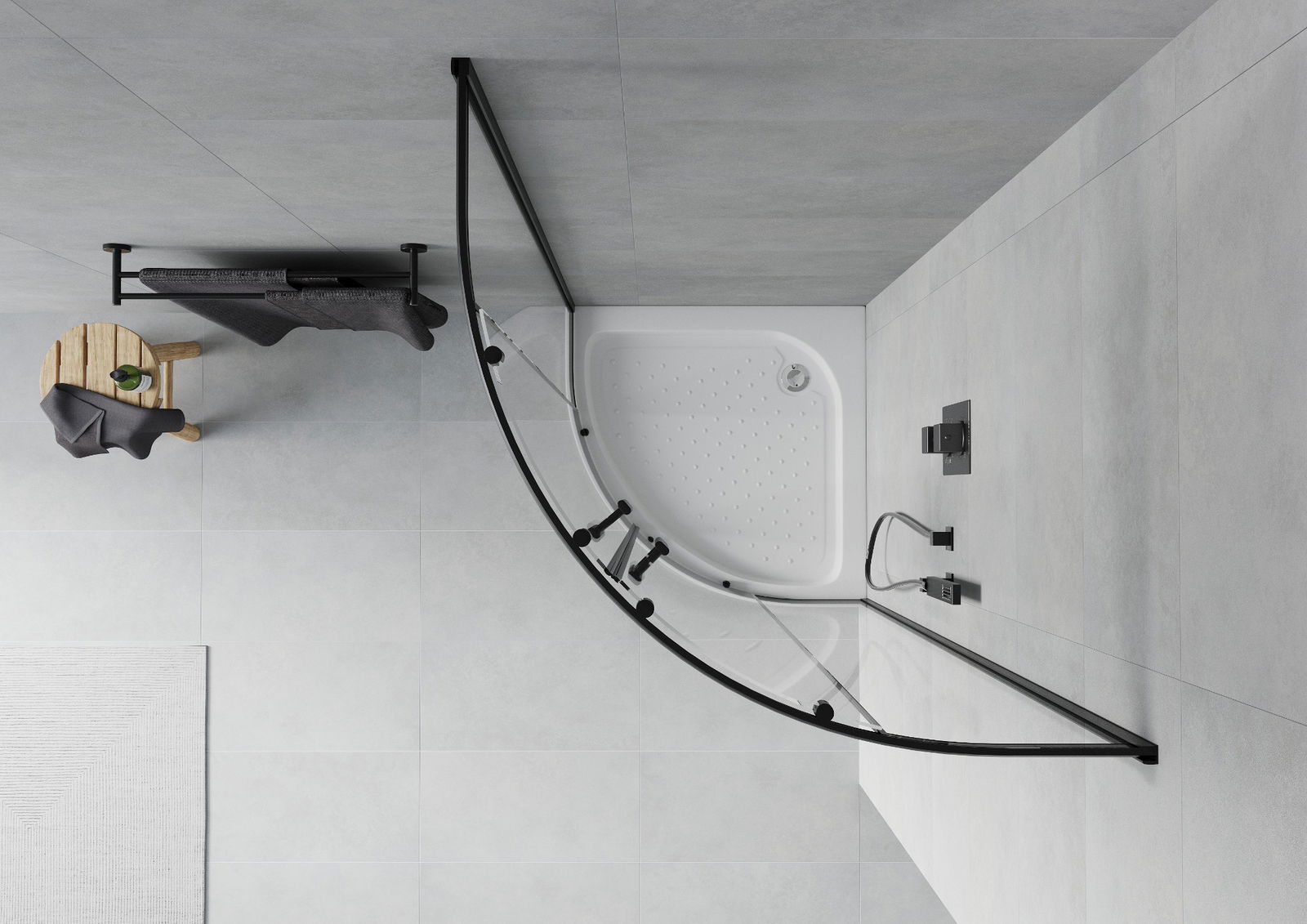 Mexen Rio овална душ кабина 70 x 70 см, прозрачна, черна + поддушовото корито Rio, бяло - 863-070-070-70-00-4710