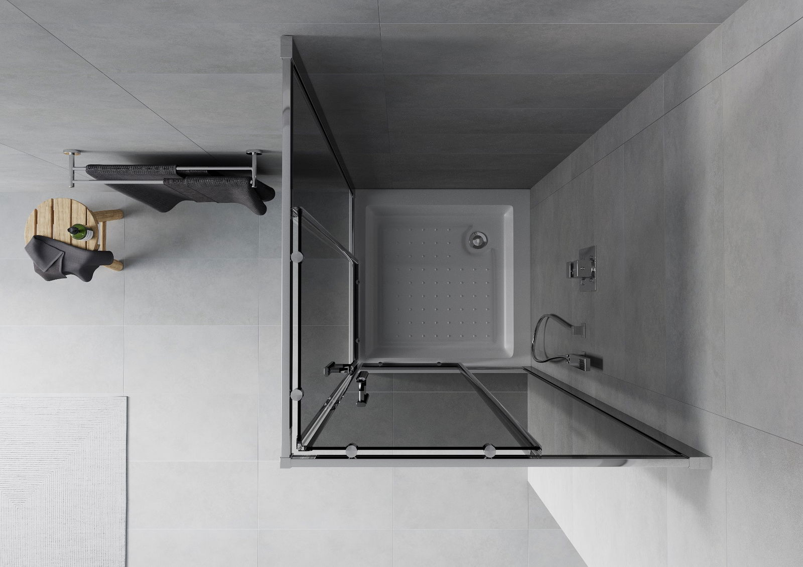 Mexen Rio квадратна душ кабина 80 x 80 см, графит, хром + корито Rio, бял - 860-080-080-01-40-4510