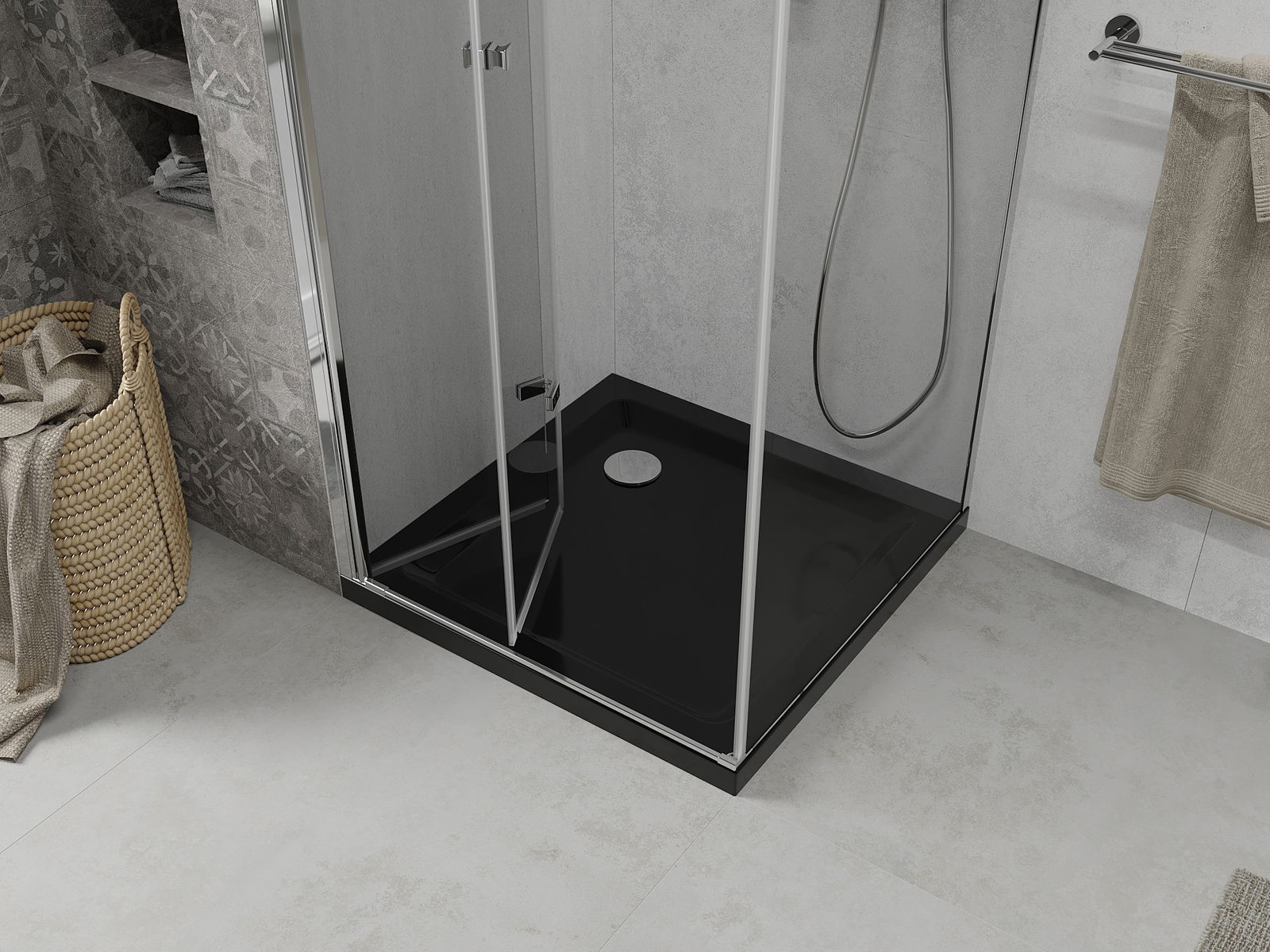 Mexen Lima сгъваем душ кабина 90 x 90 см, прозрачна, хром + плитка Flat, черна - 856-090-090-01-00-4070