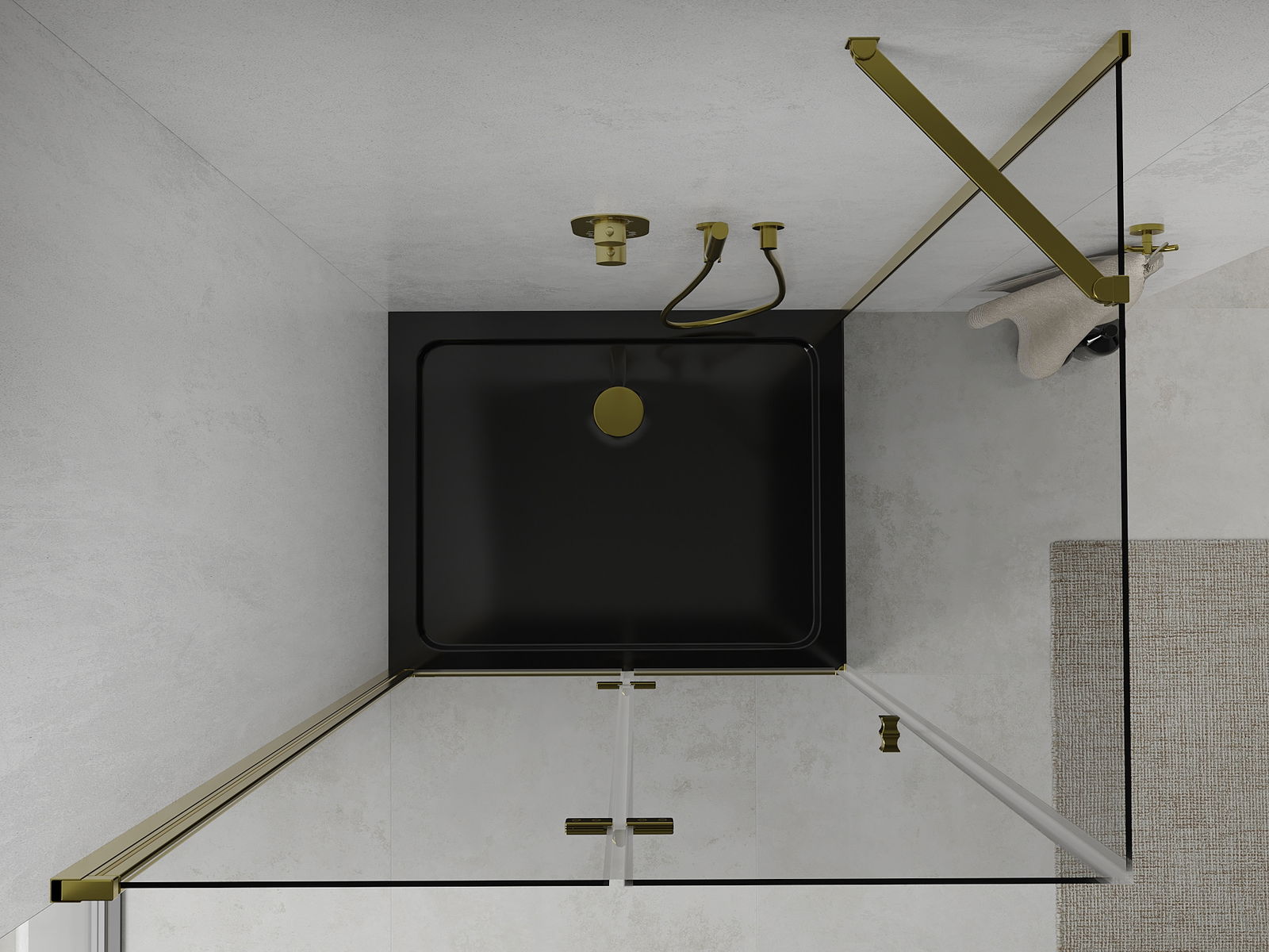 Mexen Lima сгъваема душ кабина 80 x 100 см, прозрачна, златна + поддушово корито Flat, черно - 856-080-100-50-00-4070G