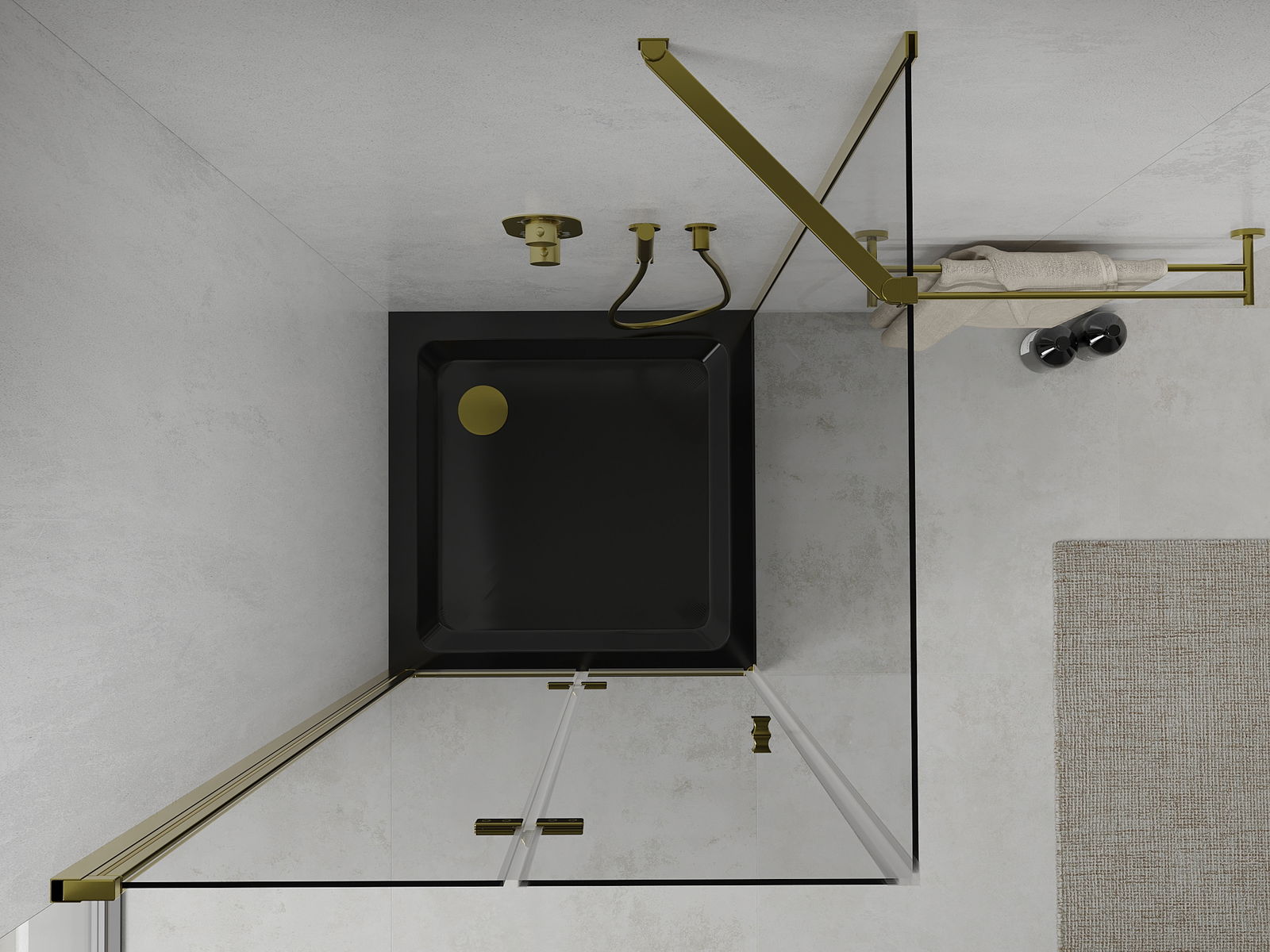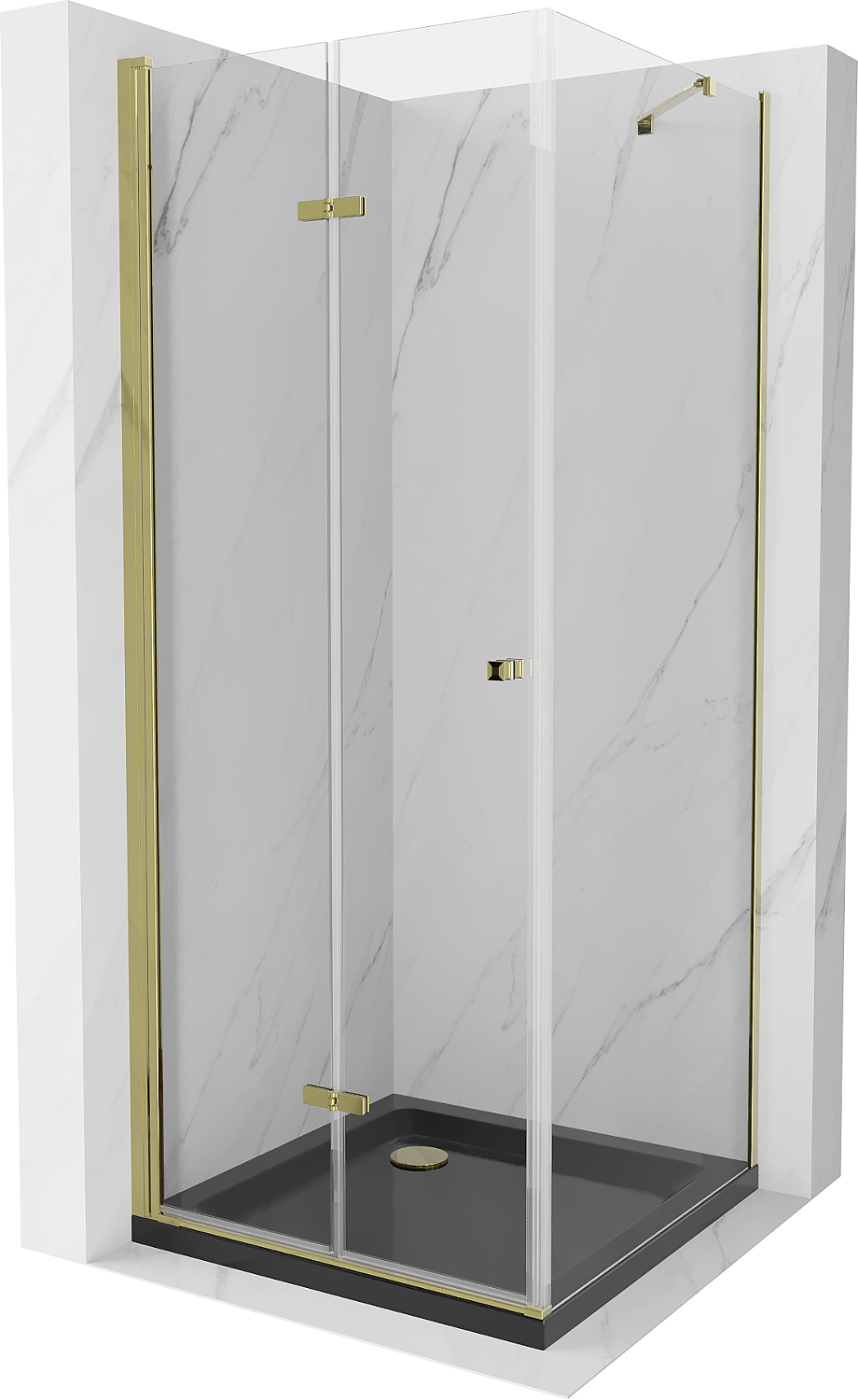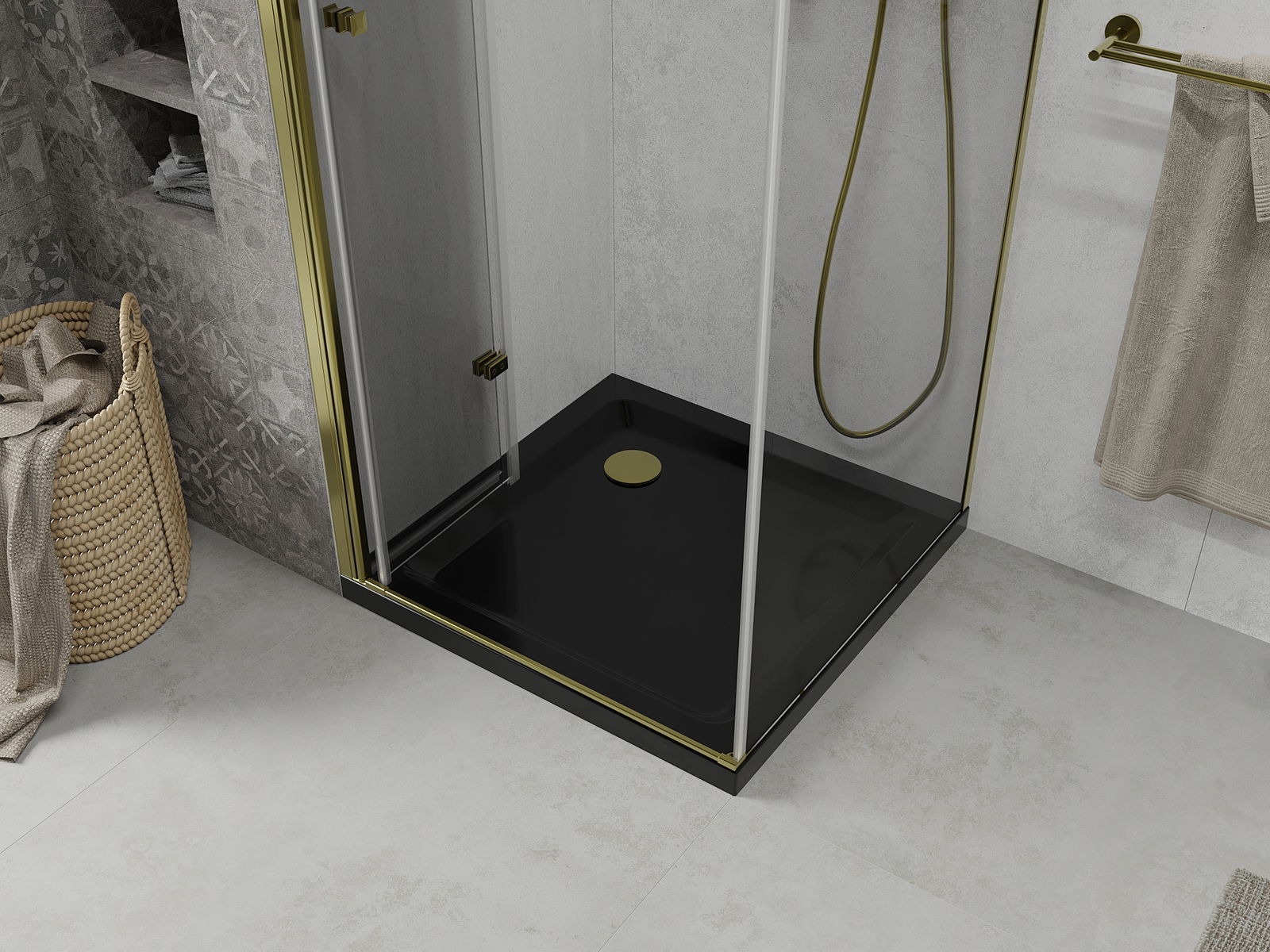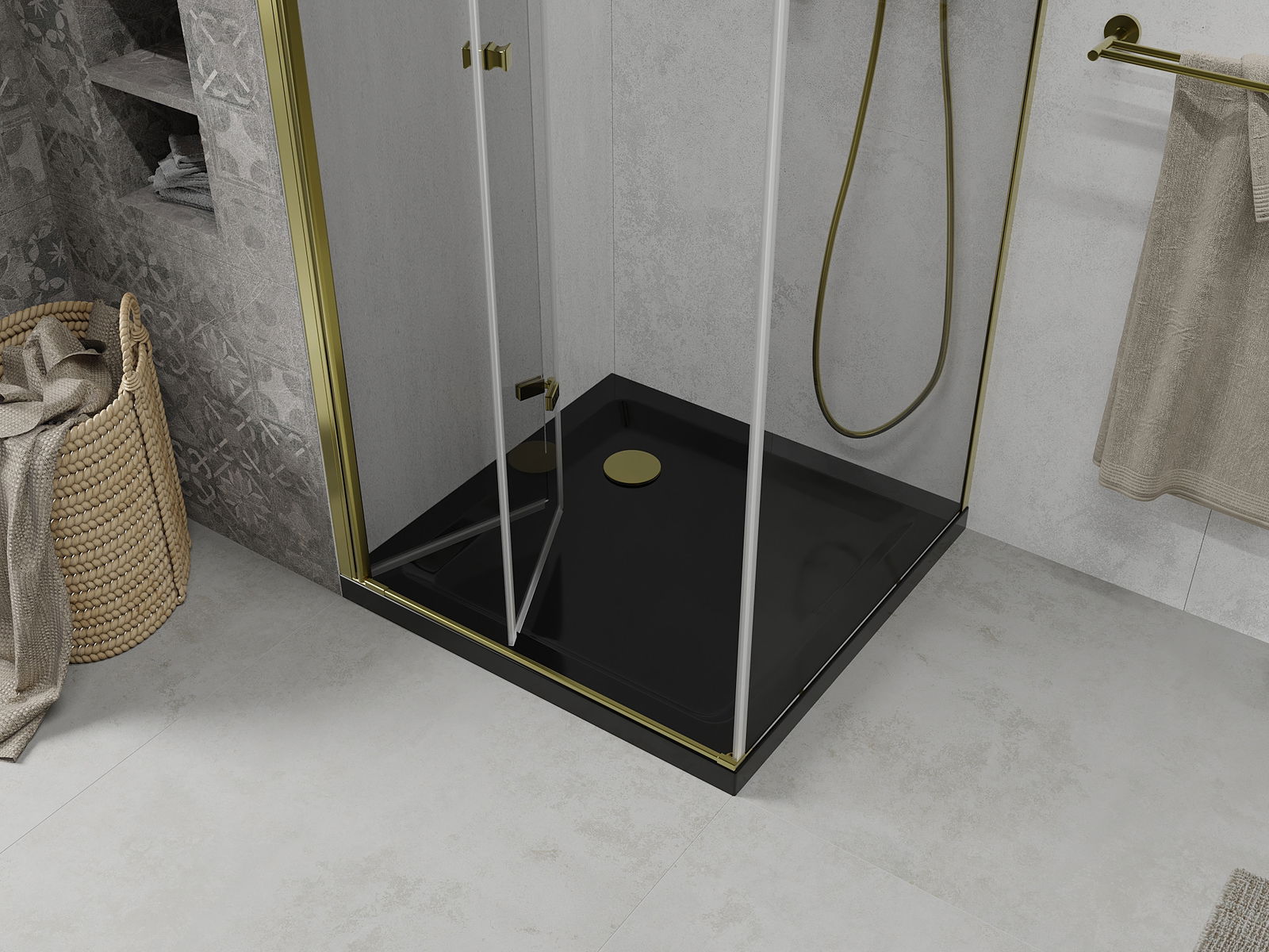 Mexen Lima душ кабина сгъваема 90 x 90 см, прозрачна, златна + корито Flat, черно - 856-090-090-50-00-4070G