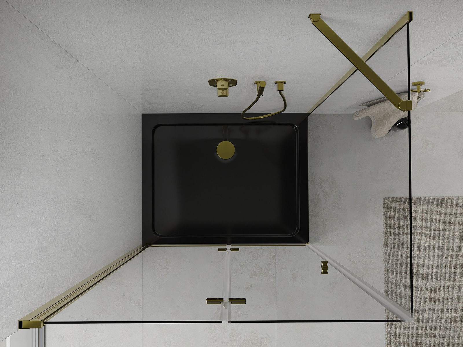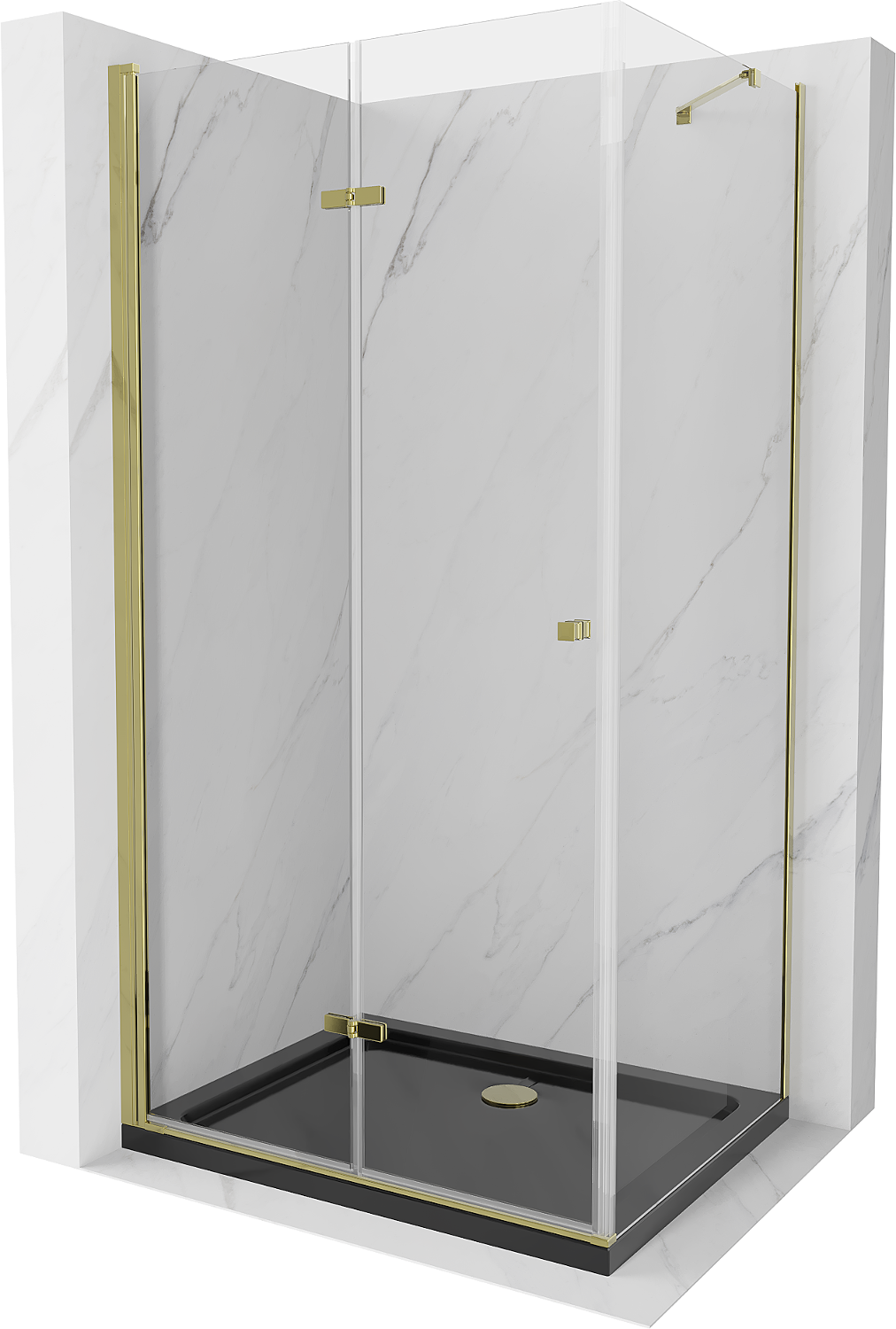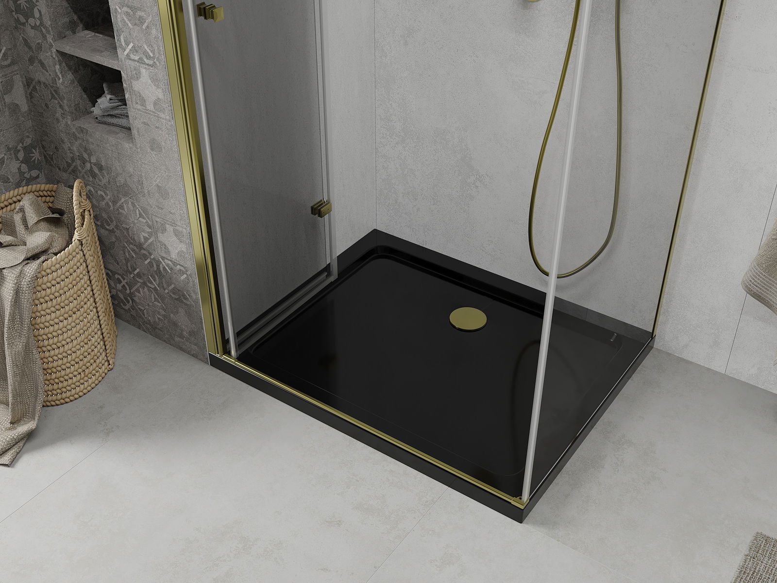 Mexen Lima сгъваема душ кабина 100 x 80 см, прозрачна, златна + плосък душ под,