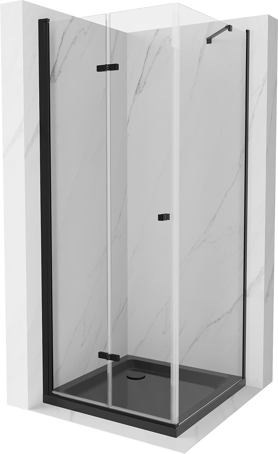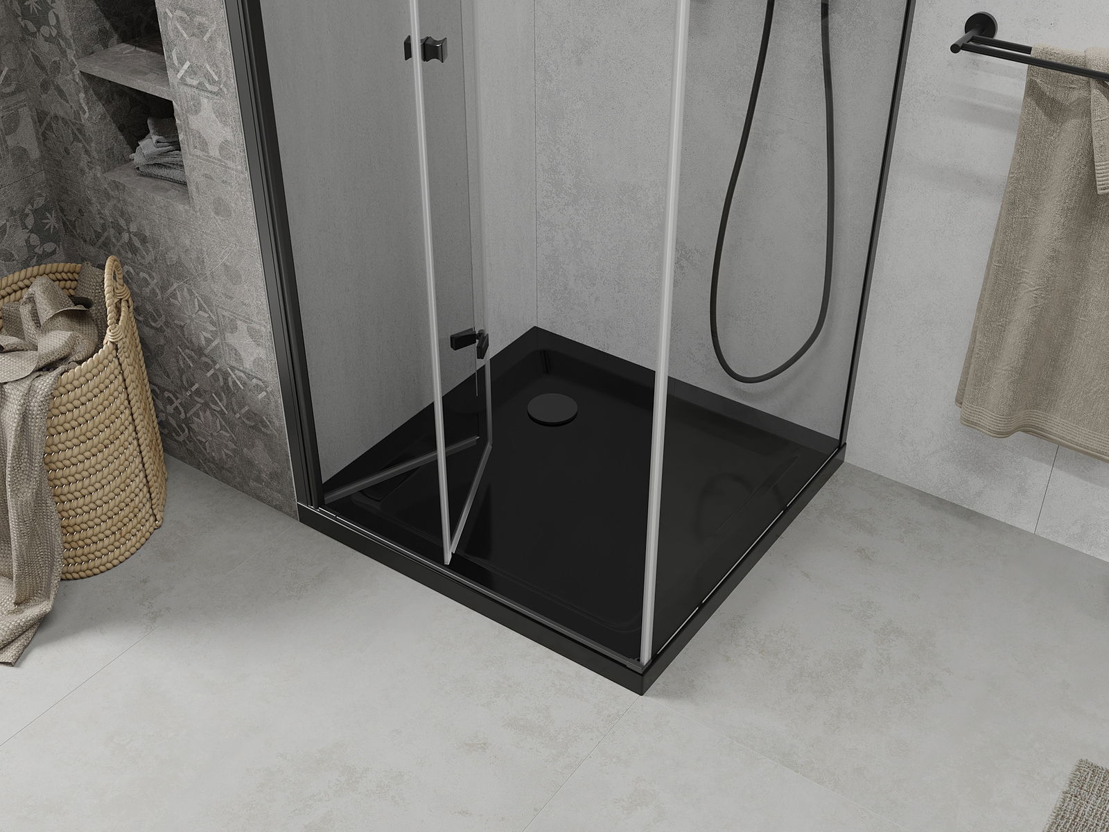 Mexen Lima сгъваема душ кабина 90 x 90 см, прозрачна, черна + корито Flat, черно - 856-090-090-70-00-4070B