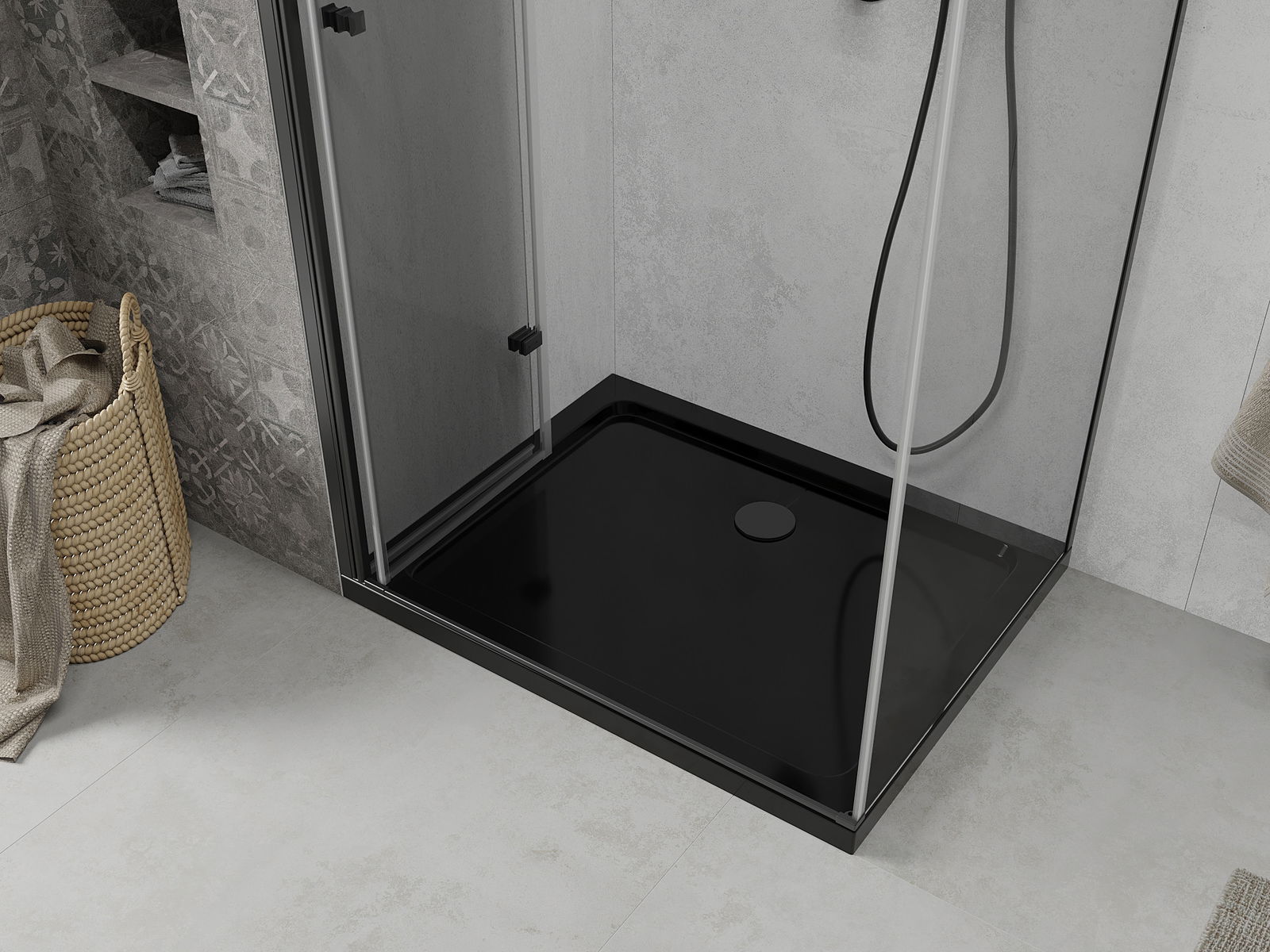 Mexen Lima сгъваема душ кабина 100 x 80 см, прозрачна, черна + плитък поддушов корито Flat, черно - 856-100-080-70-00-4070B