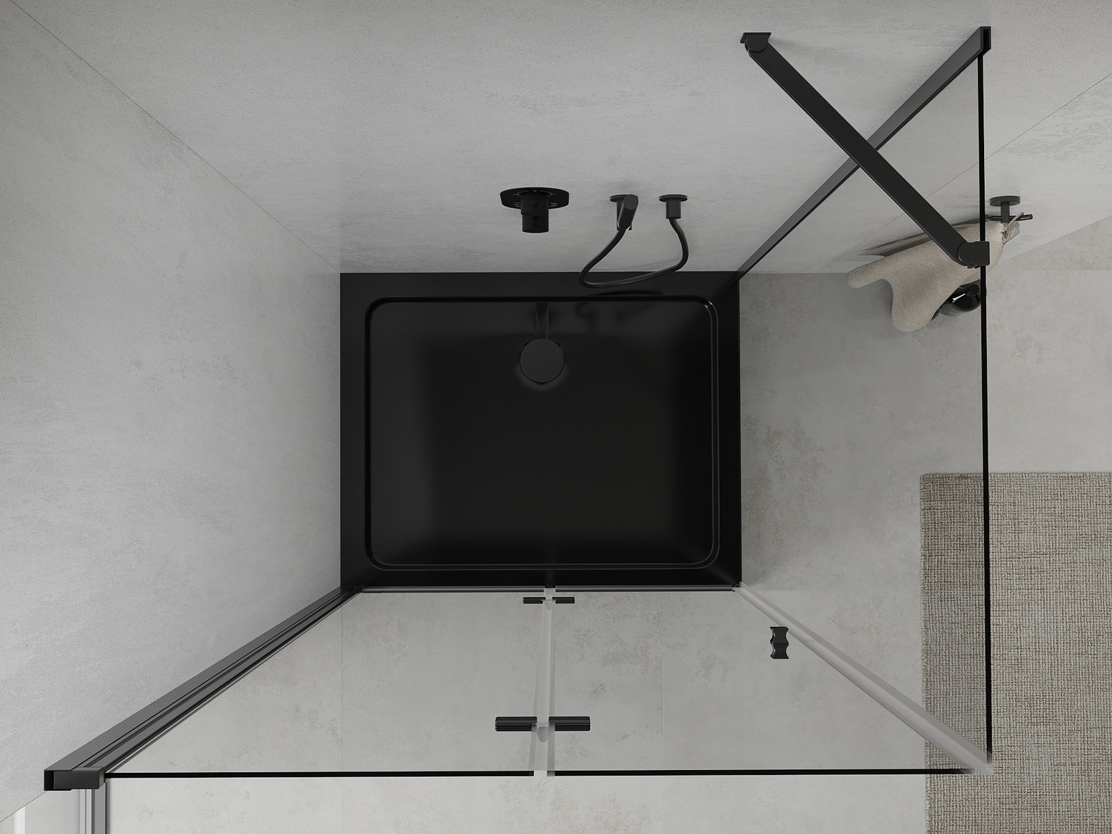 Mexen Lima сгъваема душ кабина 100 x 90 cm, прозрачна, черна + корито Flat, черно - 856-100-090-70-00-4070B