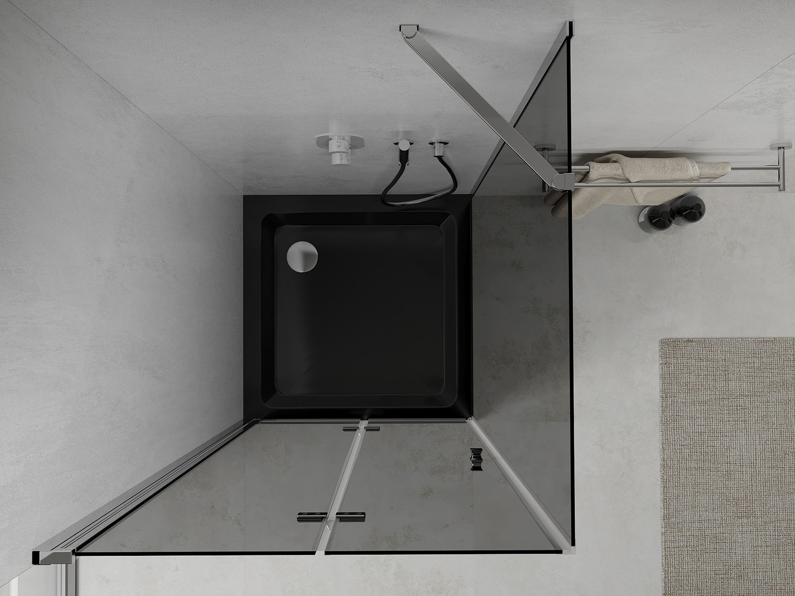 Mexen Lima сгъваема душ кабина 80 x 80 см, графит, хром + душ корито Flat, черно - 856-080-080-01-40-4070