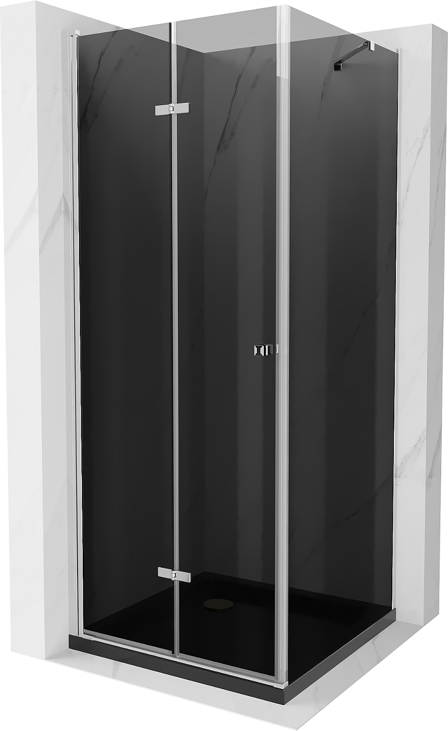 Mexen Lima сгъваем душ кабина 90 x 90 cm, графит, хром + поддушово корито Flat, черно - 856-090-090-01-40-4070