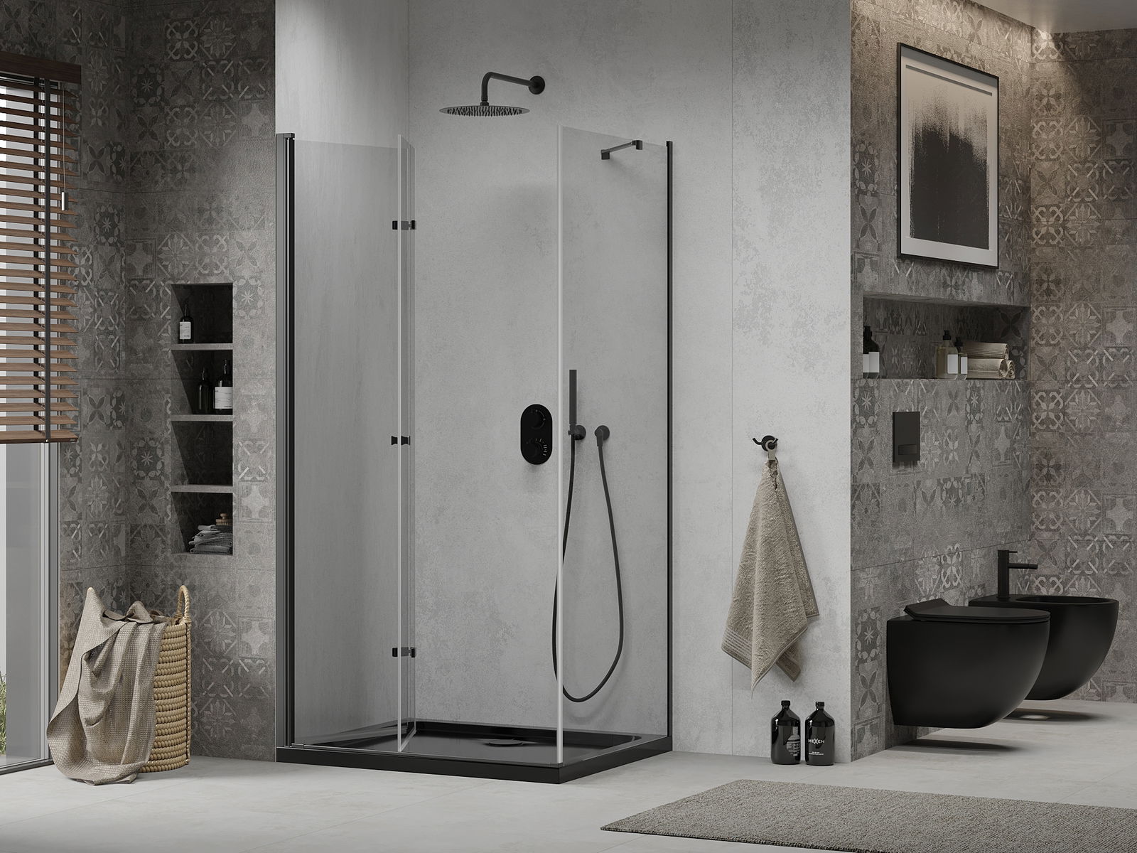 Mexen Lima сгъваема душ кабина 90 x 120 см, прозрачна, черна + корито Flat, черно - 856-090-120-70-00-4070B
